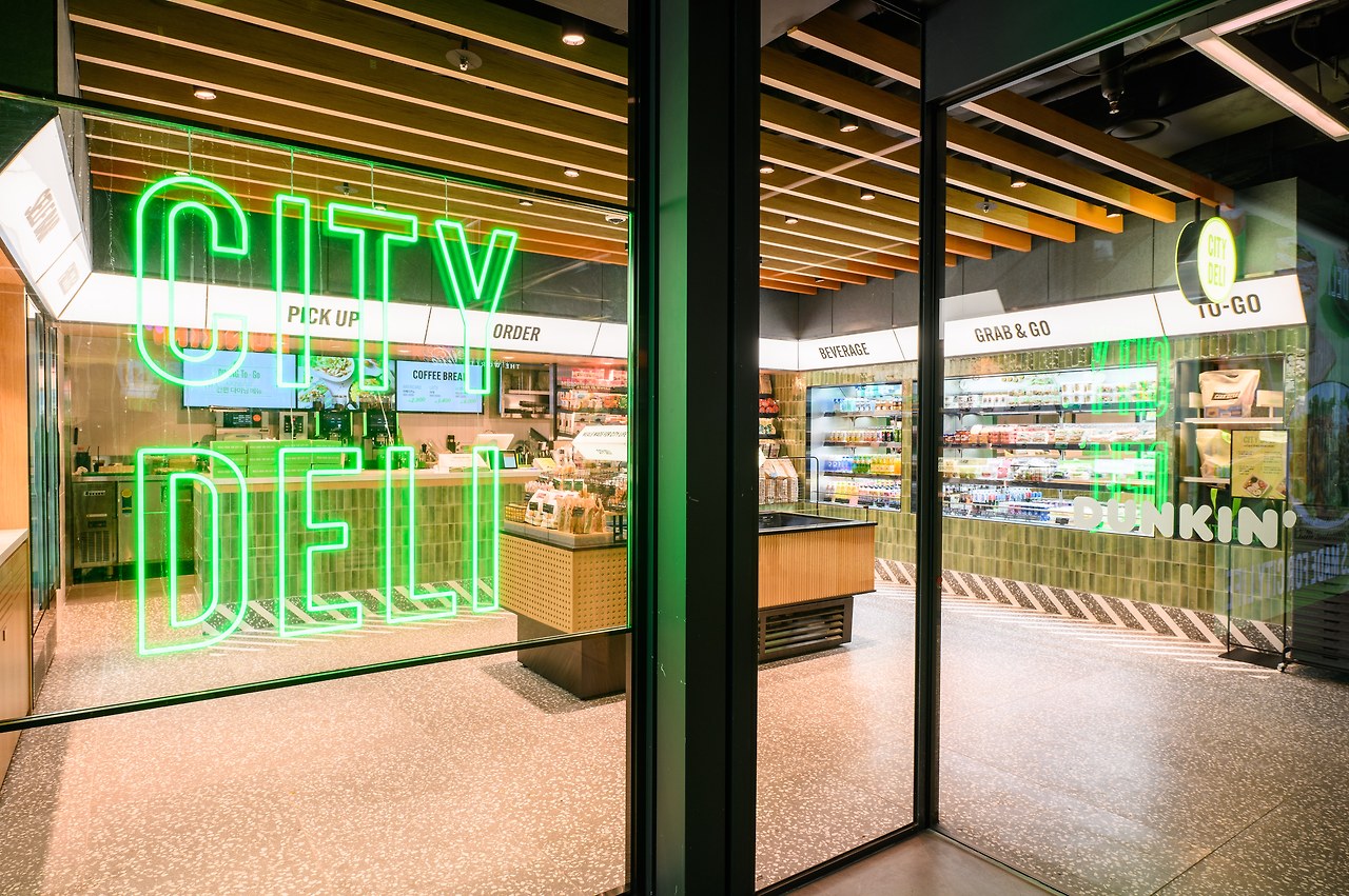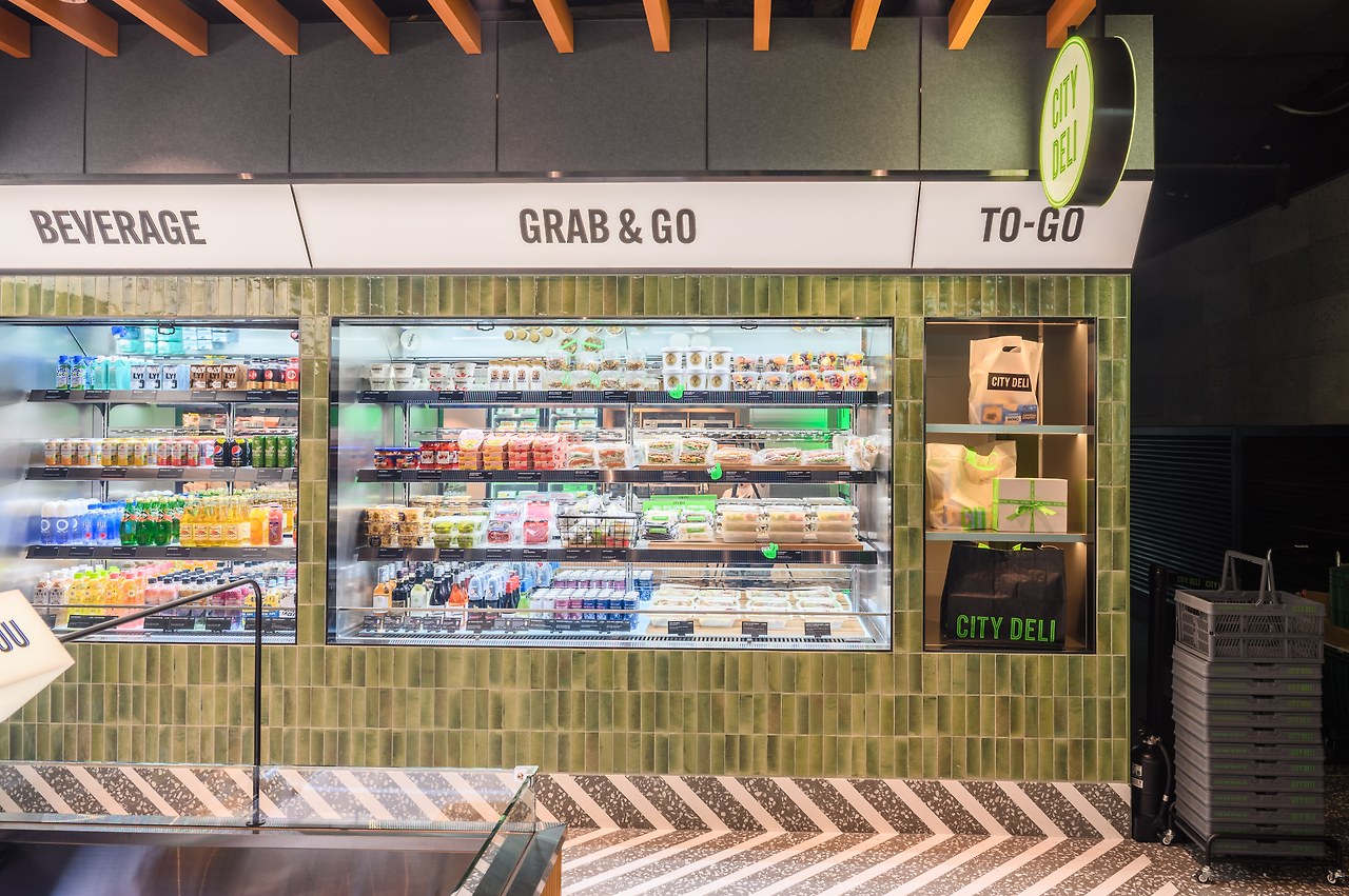그리고 브랜드 컬러를 담아 고급스러운 그린 타일을 사용하였습니다. 그린 타일에 시티델리만의 활기차고, 싱그럽고 신선한 브랜드 아이덴티티를 담고자 하였습니다.