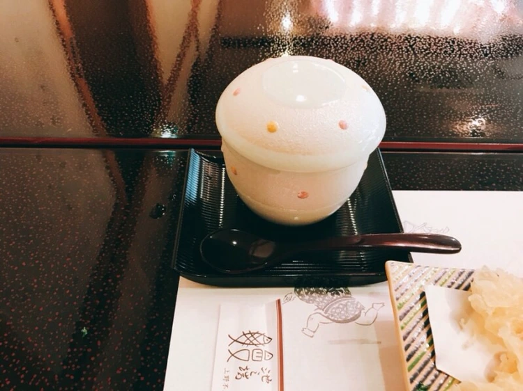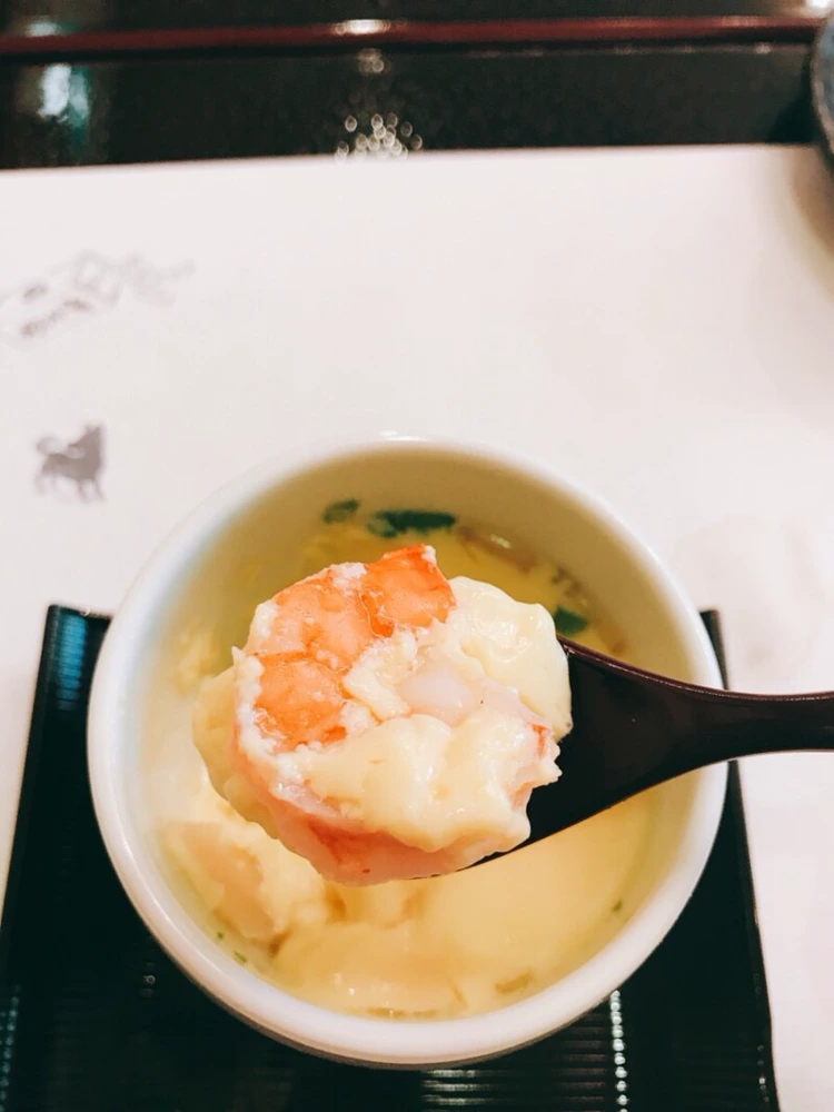장어가 나오기 전, 선어회와 튀김 그리고 계란찜이 나왔다. 계란찜에 들어간 통통한 새우가 감동적이었다. 심지어 새우 안에는, 새끼손톱보다 작은 꽃게 한 마리도 함께 들어 있었다. 암 새우인지 투명한 껍질에 주홍빛 알이 비쳤다.