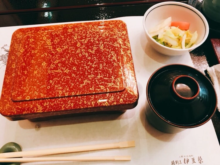 장어 찬합 정식은 4,860엔으로 매우 비쌌다. 웬만한 코스요리 수준이었다. 그래도 이건 평상시가 아니라 여행이며, 아침을 안 먹었으니 두 끼 비용을 쓰자고 합리화하며 호사스러운 요리를 시켰다. 금전적 출혈이 있었기 때문에 맥주 같은 건 시키지 않았다. 무료로 내어주는 따뜻한 우롱차로도 충분했다.