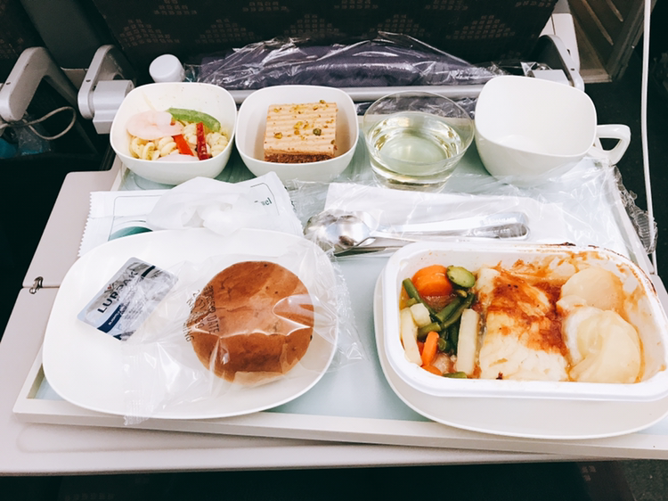 출국 전날 저녁 6시 반에 착즙 주스를 마셨고, 그 후 아무 것도 먹지 않았기 때문에 아침 11시쯤 먹을 첫 번째 기내식이 몹시 기다려졌다.