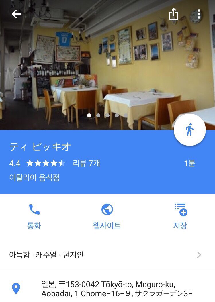 그렇게 발견한 곳은 티 피키오라는 이탈리아 식당이었다. 구글맵 리뷰를 읽었다. 어떤 외국인이 진정한 나폴리의 맛이라고 극찬하고 있었다. 별점도 4.4로 꽤 높은 편이었다.