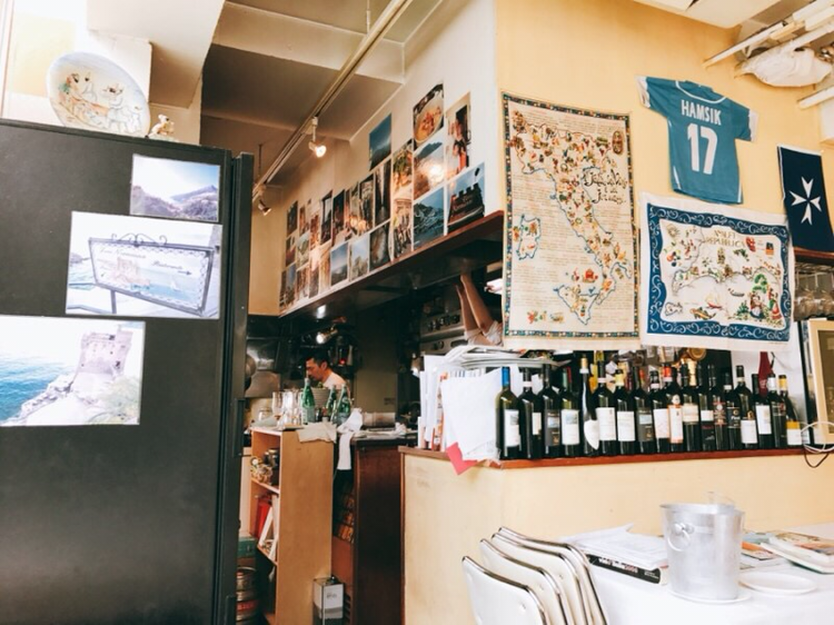 '이태리 현지의 맛'을 자랑하고 싶은듯, 주인장이 손수 찍은 지중해 아날로그 사진을 걸어두었다.