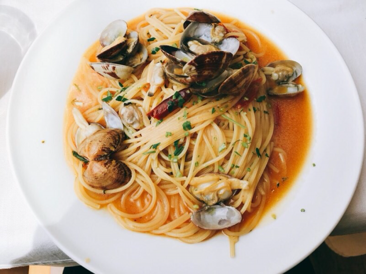 위생은 실망스러웠으나 여자 사장님은 매우 친절했다. 영어 메뉴가 없었고, 가타카나로 가득찬 메뉴뿐이었다. 어설픈 영어 절반, 일본어 절반의 의사소통 끝에 해물 파스타 세트를 주문했다.