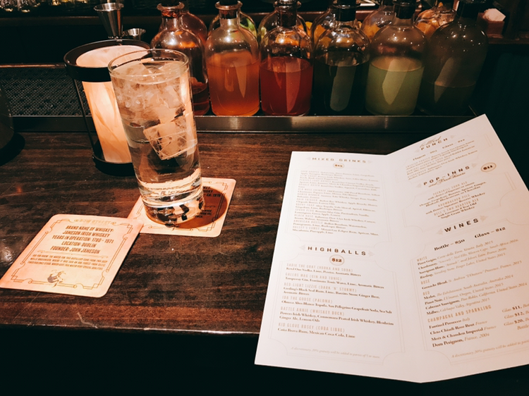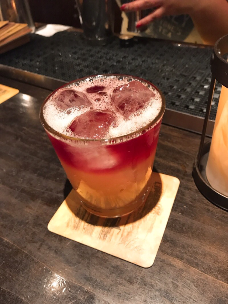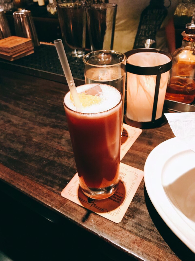 탱커레이 진, 토닉 워터, 라임, 아로마틱 비터가 들어간 Gallus Mug 진토닉이 나왔다. 비터 때문에 루비빛을 띠고 있었으며, 맛 또한 쌉싸름했다. 그러나 월드 베스트바 1위라는 타이틀에 걸맞지 않게 칵테일은 실망스러웠다. 진토닉의 핵심은 상큼함과 탄산인데, 김 빠진 콜라처럼 밍밍했다. 여기만 김이 빠졌나 생각했는데, 다른 뉴욕의 바도 방문해본 결과 탄산이 들어간 칵테일은 전체적으로 별로였다. 상큼함도 없었다. 비터의 향이 너무 강해 쓴맛이 지배적이었다.