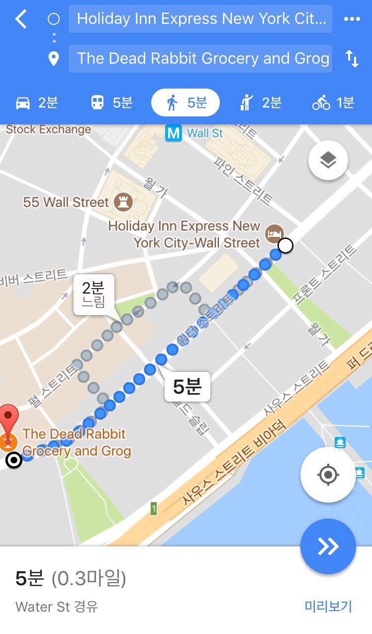관광지에 대한 접근성은 살짝 떨어지지만, 이 숙소가 좋은 이유가 하나 있었다. 2016 월드 베스트바 1위를 수상한 '데드 래빗 Dead Rabbit'이 걸어서 5분 거리였다.