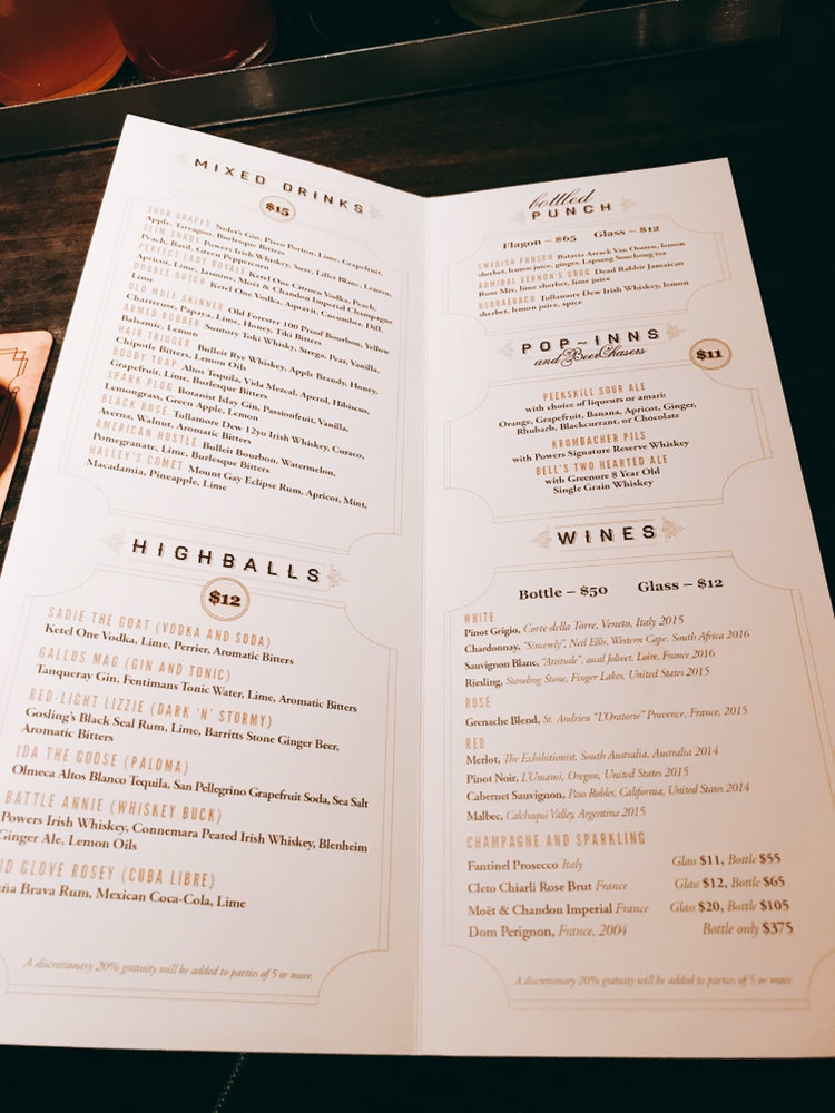 공항에서 택시를 타고 호텔에 내렸다. 애석하게도 체크인은 세 시부터라고 하는데, 시계를 보니 두 시가 살짝 못되었다. 사우스 포트 TKTS를 구경하는 등 월스트리트를 배회하다가 데드 래빗으로 들어갔다. 그곳은 오전 11시에 오픈하기 때문에 낮에도 칵테일이나 맥주를 마실 수 있는 곳이었다.