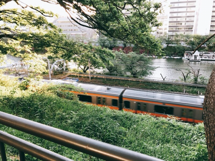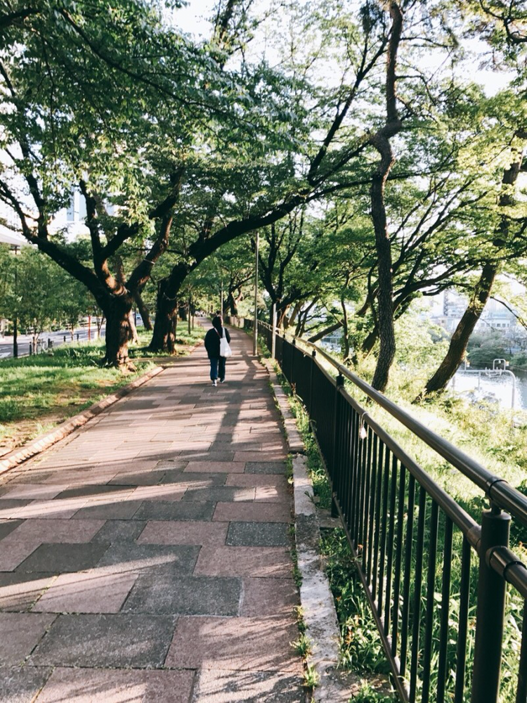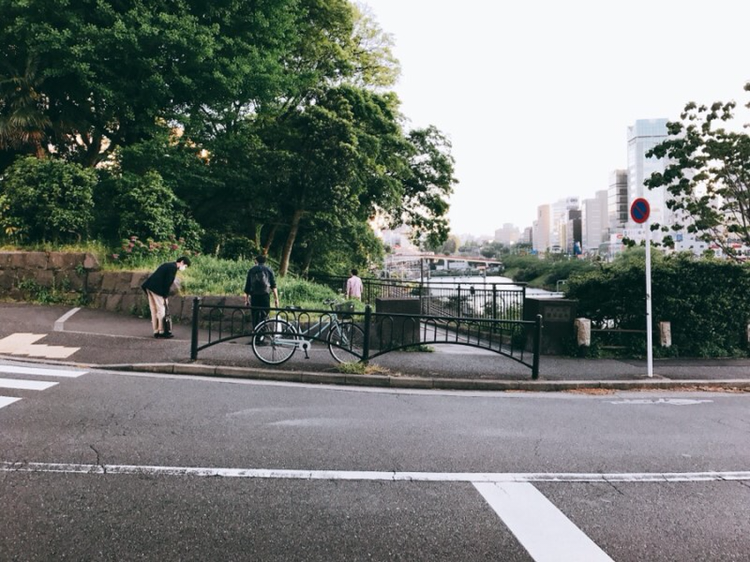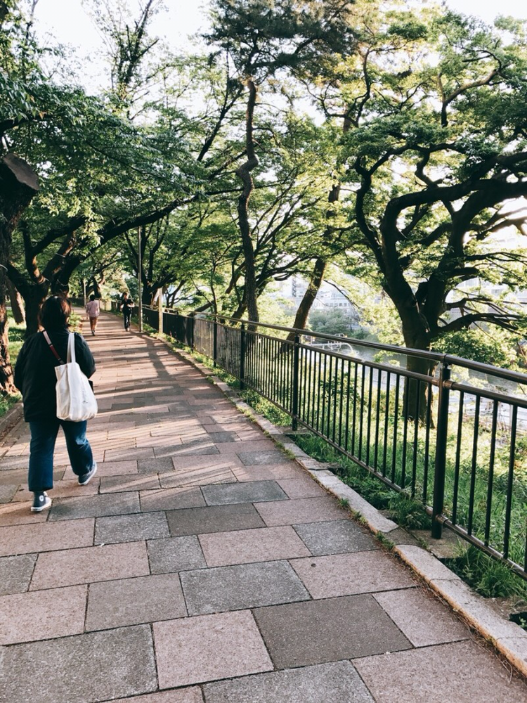 역의 서쪽 출구로 나갔다. 카구라자카로 가려면 반대편으로 나가야하지만, 강을 따라 산책하고 싶었다.