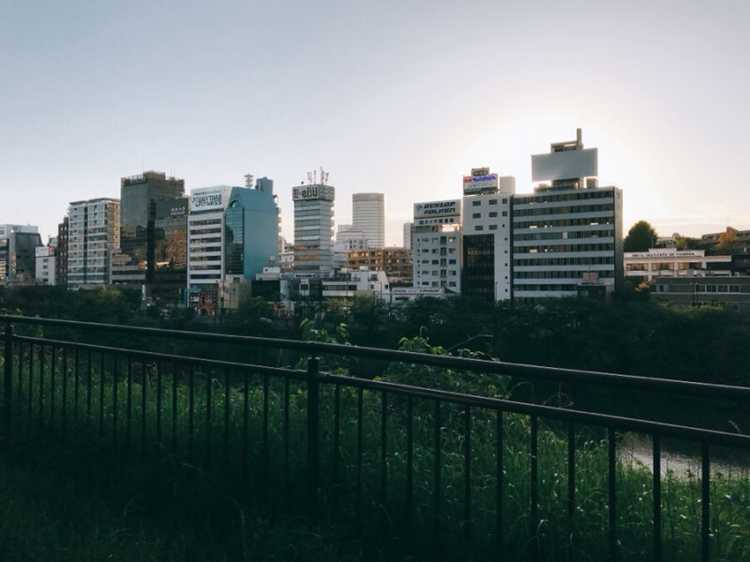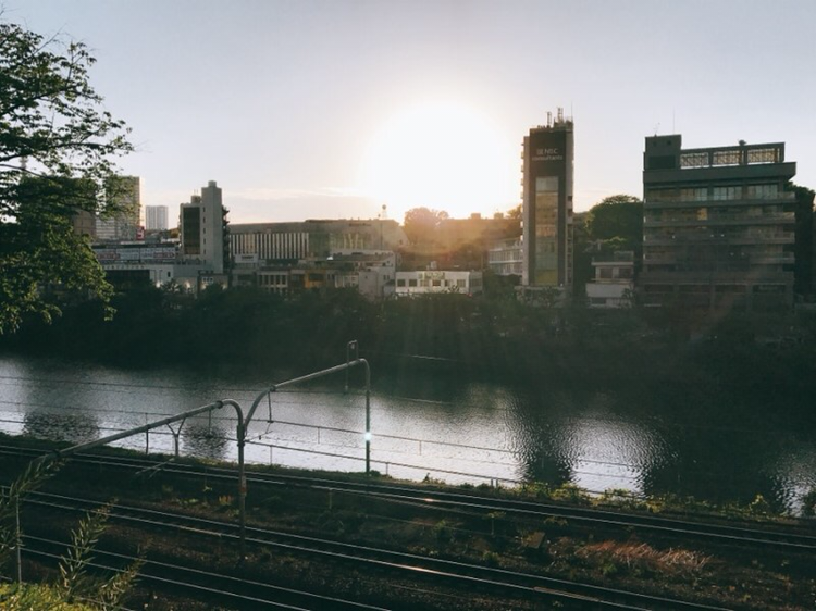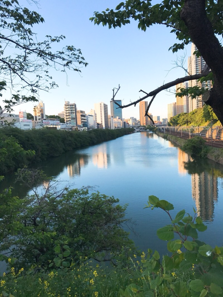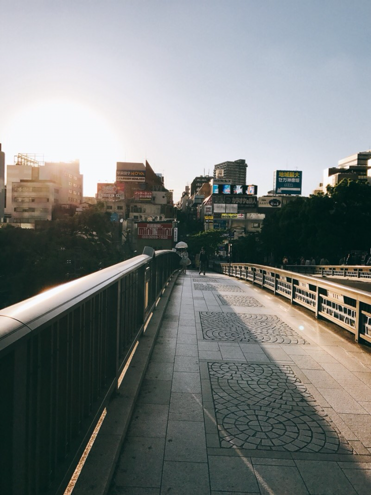 해 떨어질 무렵, 이다바시의 강가를 걸었다.