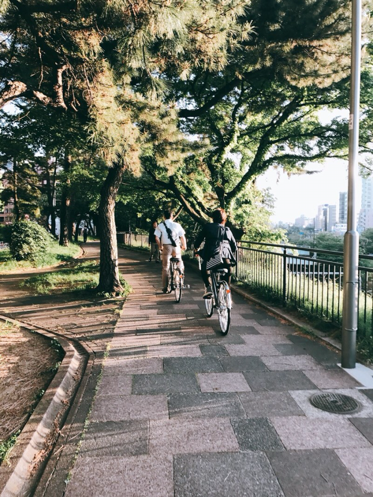 반면 강가가 보이는 오른쪽은, 정적인 왼쪽과는 달리 활기가 넘쳤다. 자전거들이 슝- 하며 지나갔다.