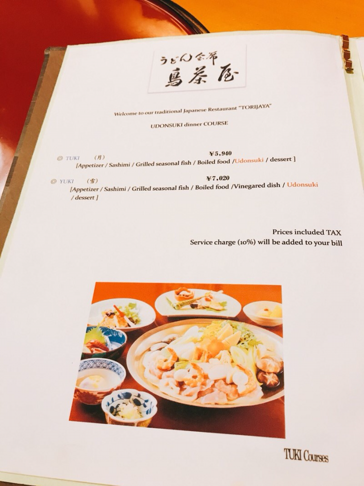 토리자야는 낮에는 오야코동, 저녁에는 우동스키가 유명하다. 우동스키는 우동 스키야키로, 이를테면 우동전골이다.