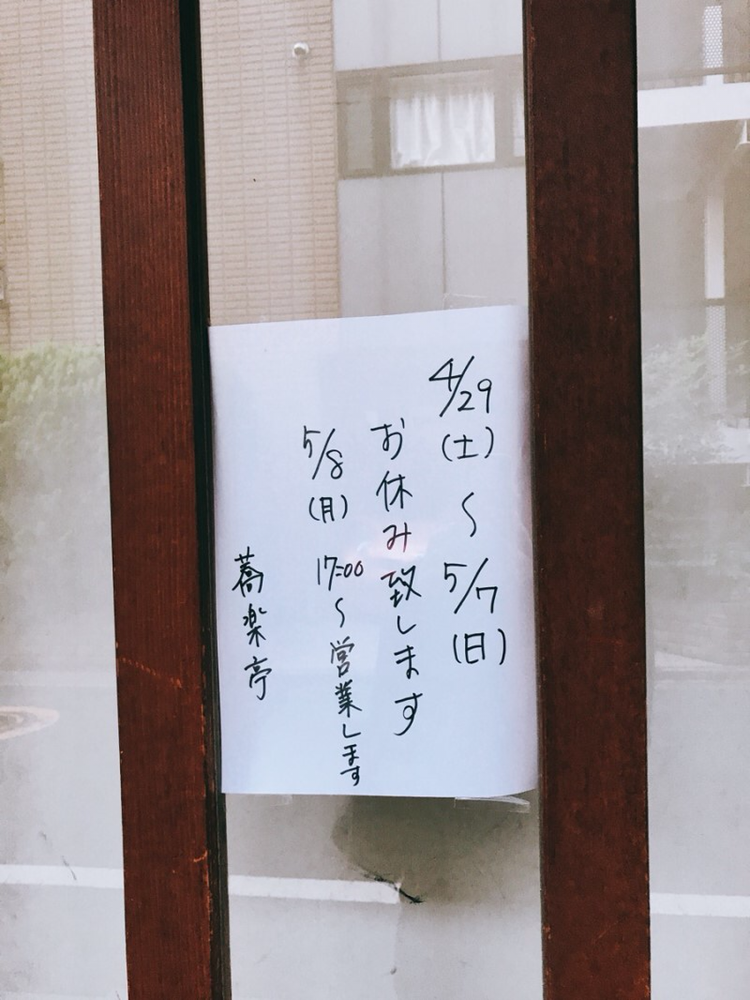허탈하게도 골든위크를 맞이하여 긴 휴업을 알리는 메모가 붙어있었다. 어쩔 수 없이 당시 플랜B였던 토리자야로 향했다.