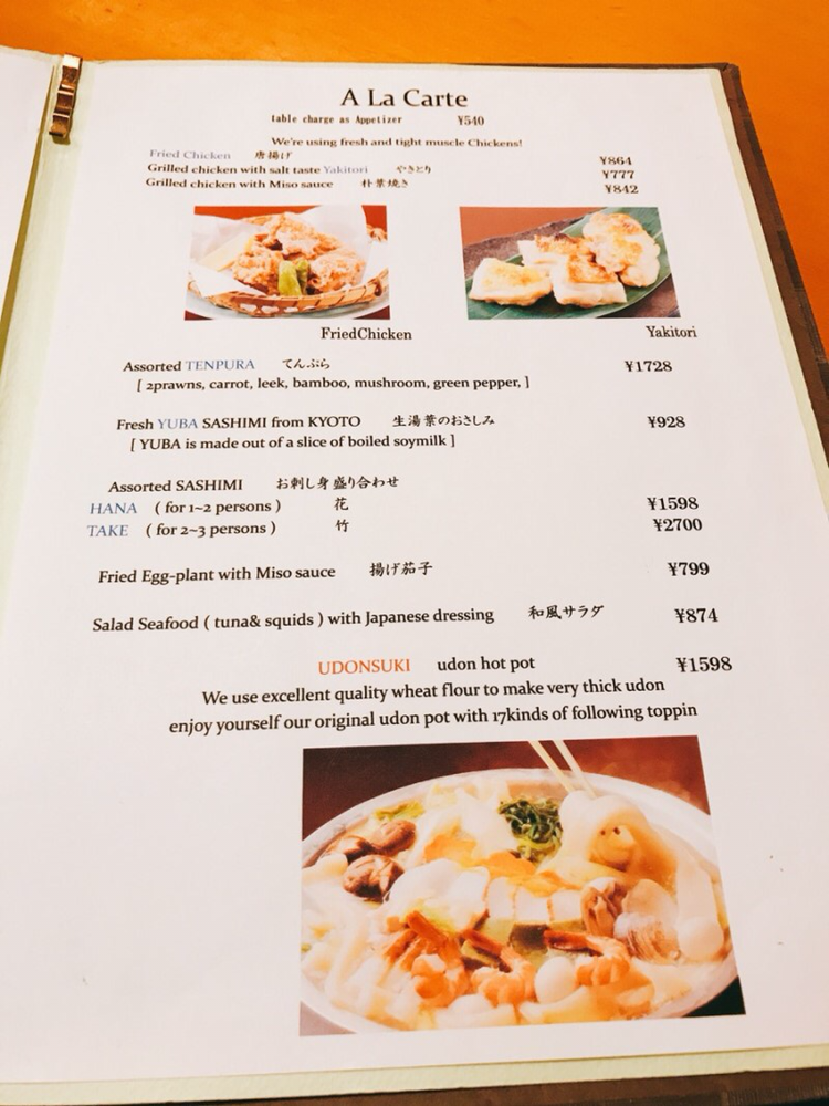 토리자야는 도쿄의 식당이지만, 간사이 지방 음식을 팔았다. 우동스키는 오사카의 명물이고, 유바 사시미는 교토의 향토 음식이다.