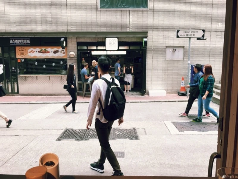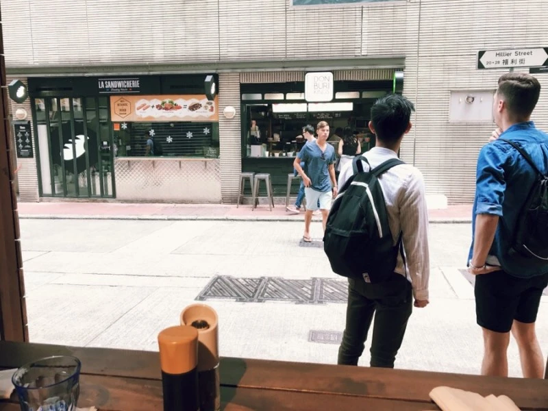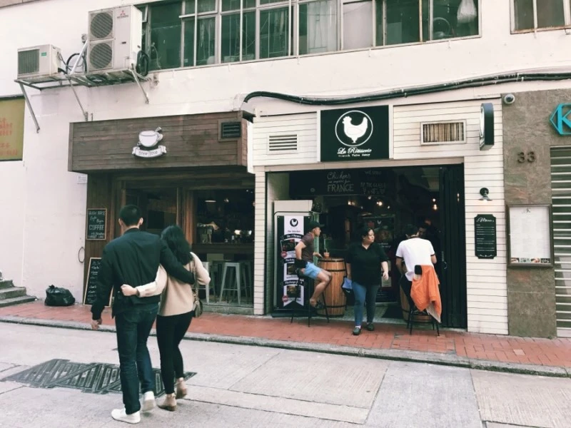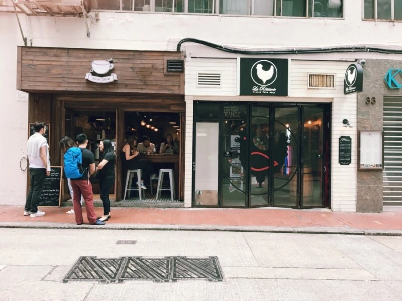 셩완에서 소호로 향하는 길, 식당이 아닌 카페인데도 대기줄이 있었다. 옆집은 French Take away 치킨집이라 닭 튀기는 냄새가 자욱했다.