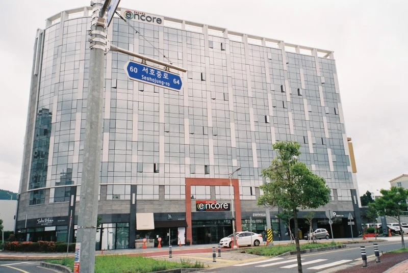 리무진 버스는 시외버스터미널의 바로 옆인 이마트에 하차했고, 바로 택시를 잡아 라마다 앙코르 이스트 호텔에 도착했다. 라마다 앙코르 서귀포와 라마다 앙코르 이스트는 길을 하나 두고 서 있다. 앙코르 이스트가 더 나중에 지어졌다. 앙코르 서귀포엔 세븐일레븐 편의점이 있고, 앙코르 이스트에는 테이크 어반 카페가 있다. 지하에는 썩 괜찮아 보이는 레스토랑이 있다. 우리 숙박엔 조식이 포함되어 있지 않아 안타깝게도 방문하지 못했다.