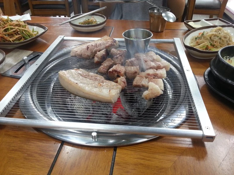 3인분이라 양이 너무 많아 배가 터지는 줄 알았다. 사장님이 모든 고기를 다 구워주시고, 먹기 좋게 앞에 가져다주셔서 마치 손 안 대고 코 푸는 듯한 편한 식사를 할 수 있다. 그러나 쉴 틈 없는 사장님의 강의에 맞장구를 쳐야 하고, 함께 고기를 먹으러 온 동행과는 전혀 얘기를 나눌 수 없었다. 오직 먹는 행위만이 허용될 뿐이다. 게다가 3인 세트를 시킨 것은 돈 낭비, 음식 낭비, 살 찌는 지름길이었다.