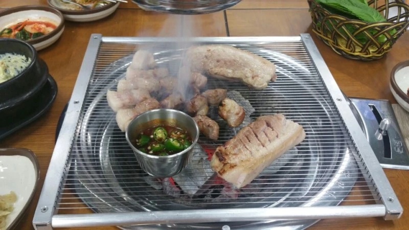 우리는 여기서 큰 실수를 범했다. 사이 좋게 오겹살 1인분, 목살 1인분을 시켰으면 좋았을걸, 음식점 직원의 꼬임에 넘어가 3인세트를 시킨 것이다.
