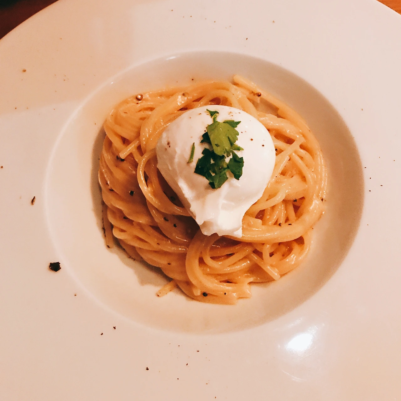 가운데가 오목한 접시에 면이 가지런히 담겨 나왔다. 접시 모양 때문에 양이 적어 보였으나, 의외로 먹어보니 (여자 기준으로는) 양이 적당했다. 성게알 파스타엔 성게알을, 트러플 파스타엔 수란을 얹었는데 직원분이 직접 맛있게 섞어주셨다.