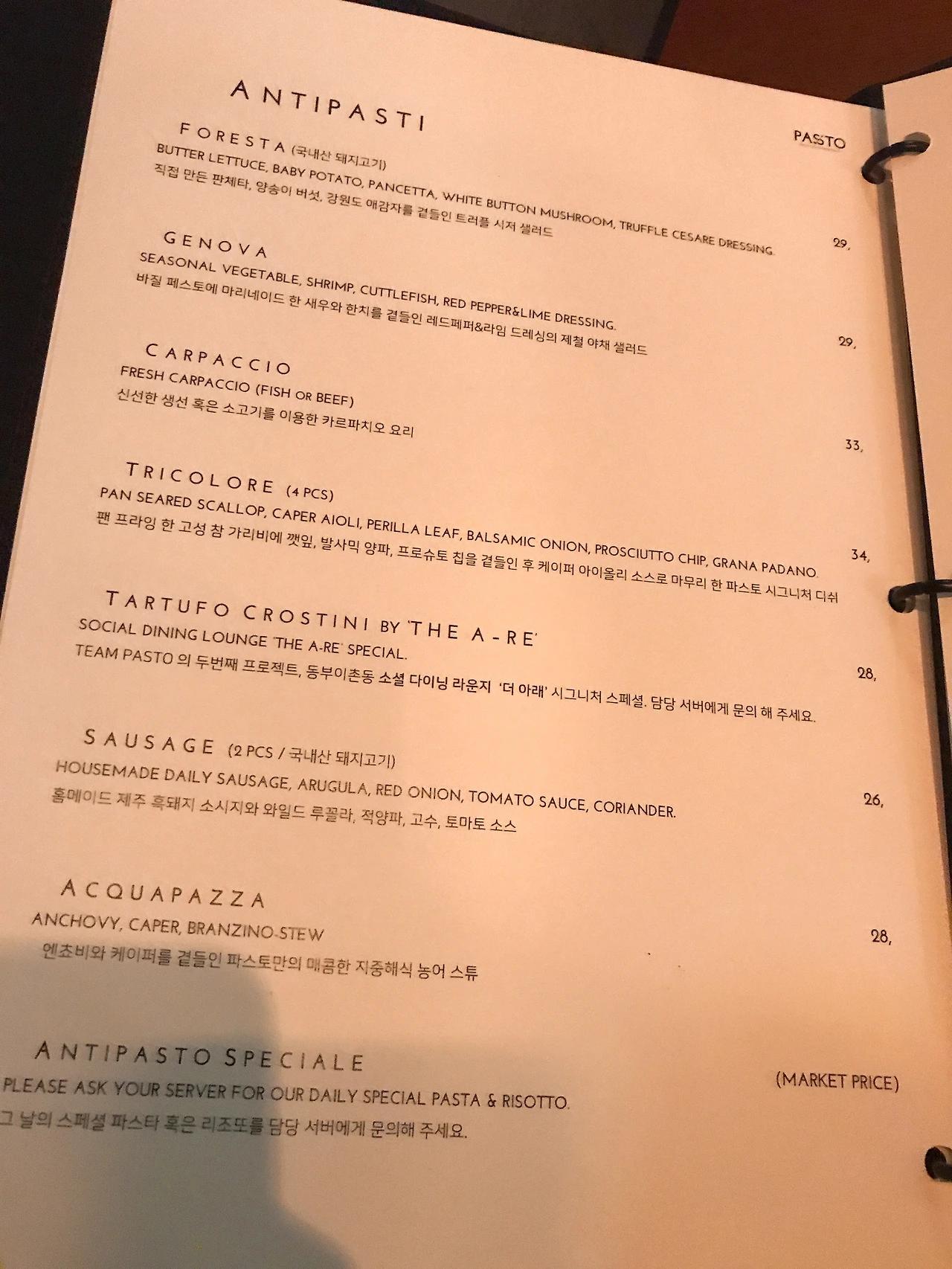 어떻게 이 곳을 알게 됐는지는 잘 기억나지 않는다. 아마 인스타그램이나 블로그에서 리뷰를 봤겠지. 가격은 비싸지만 맛있는 곳, 메인 음식보다 애피타이저가 더 비싸게 느껴지는 곳이라 했다. 양은 적지만 가격대가 파스타와 자웅을 겨루기 때문이었다.