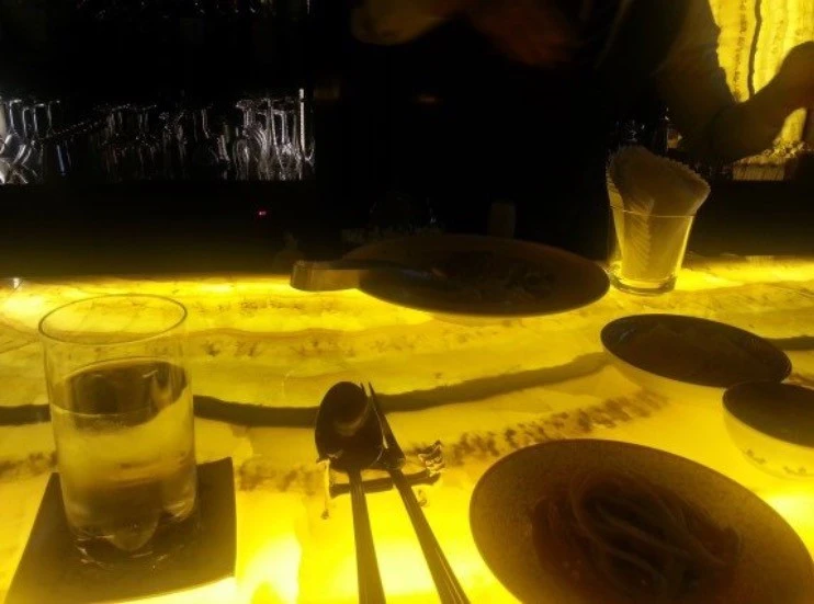 나는 아직 일행이 오지 않았다고 설명했고, 7시가 되면 바 자리에 앉기로 했다. 얼굴이 기억나지 않는 누군가가 차가운 물 한 잔을 가져다주었다. 얼굴이 기억나지 않는 이유는, 당시 내 마음이 편치 않았기 때문일 것이다. 더위를 가시게 하는 시원한 냉수를 마셨다.