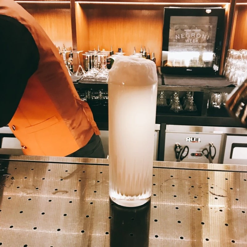 더군다나 10분 넘게 쉐이킹을 해야 하는 단점을 보완하기 위해 자동화까지 구현돼 있었다. 대만에서 파는 버블티 기계를 라모스 피즈 전용 쉐이킹 기계로 변형한 것이었다. 아무튼 처음 방문했을 때는 화려한 외관과 창의적인 칵테일, 외국인 바텐더들이 상주하는 이국적인 분위기 등으로 한창 폭 빠졌었다.