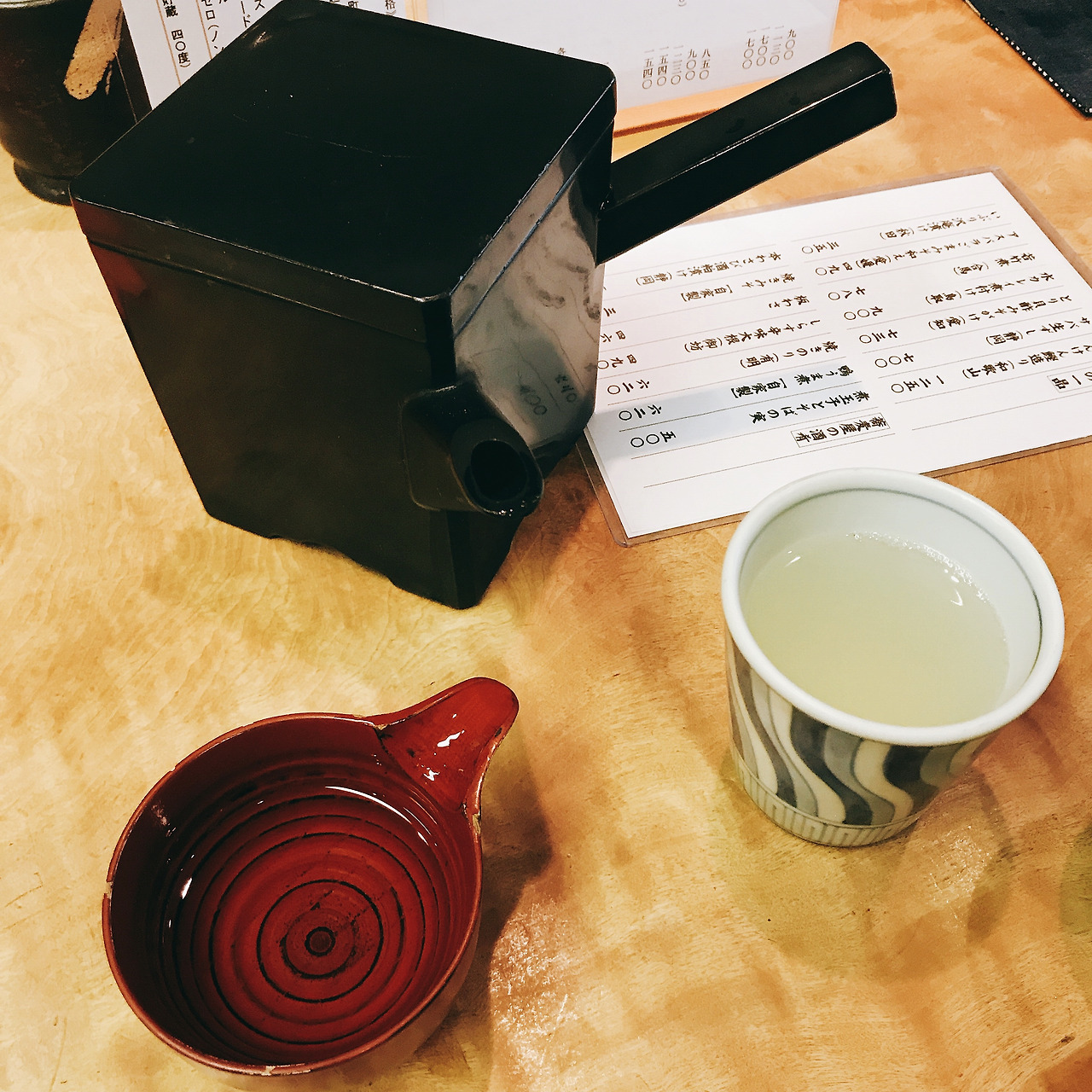 사장님은 소바 삶은 물, 이를테면 숭늉 같은 소바유를 소주에 섞어 마시기를 권했다. 위의 사진에 있는 까만 주전자가 소바유다. 다행히 소바유를 부어 마시니 소주 특유의 향이 가라앉아 먹을만해졌다. 그런데 안 그래도 소주의 양이 많은데, 소바유까지 섞으니 두 배로 늘어나 배가 불렀다. 이 소주 녀석은 물타기를 해도 취하는 것 같았다.