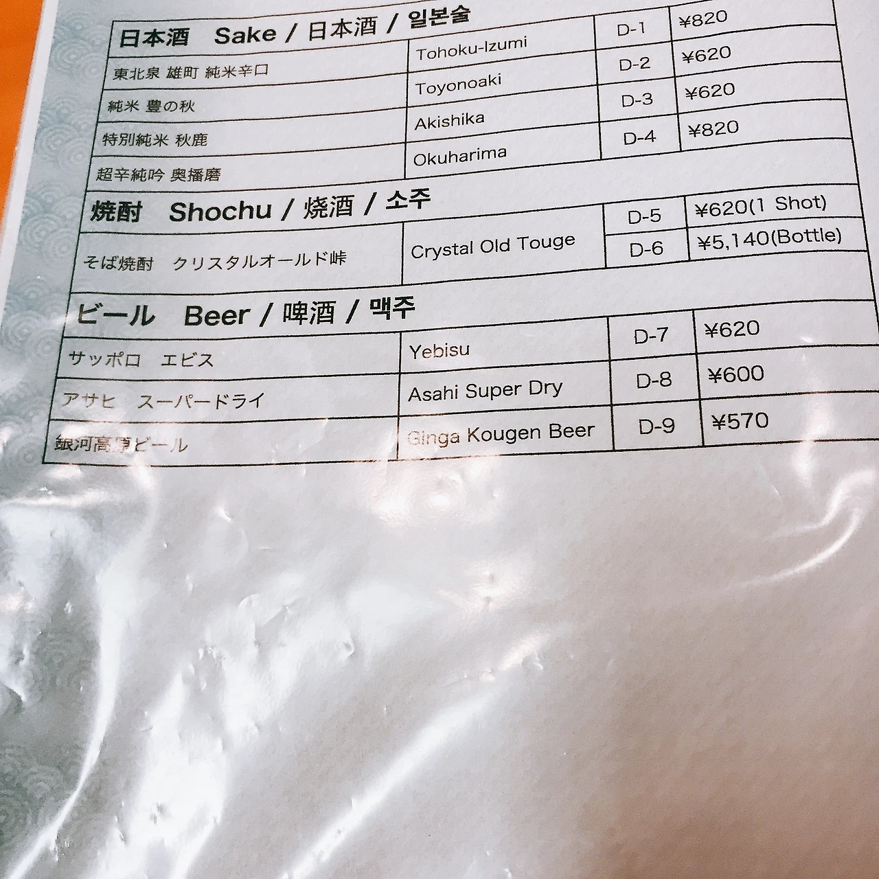 그러나 슬프게도 결과는 다르지 않았다. 고구마 성분 인공 주정으로 만든 희석식 증류주보다 향은 좀 나은 편이었지만, 소주는 소주였다. 게다가 한 잔이 어찌나 양이 많은지, 왜 가격이 620엔인지 알 수 있었다.