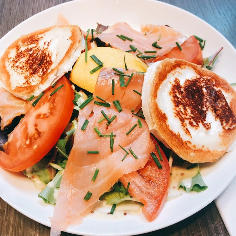 다양한 녹색채소와 신선한 토마토, 훈제연어, 구운 염소치즈 2개, 오일 식초 드레싱, 레몬이 곁들여져 나오며 상당히 푸짐하다. 사이드 메뉴라기보다는 한 끼 식사에 가까운 양이다. 가격은 비쌌지만 염소치즈라는 걸 한국에서 먹어보기 힘들고, 맛있기까지 했으므로 돈을 지불할 가치가 있었다.
