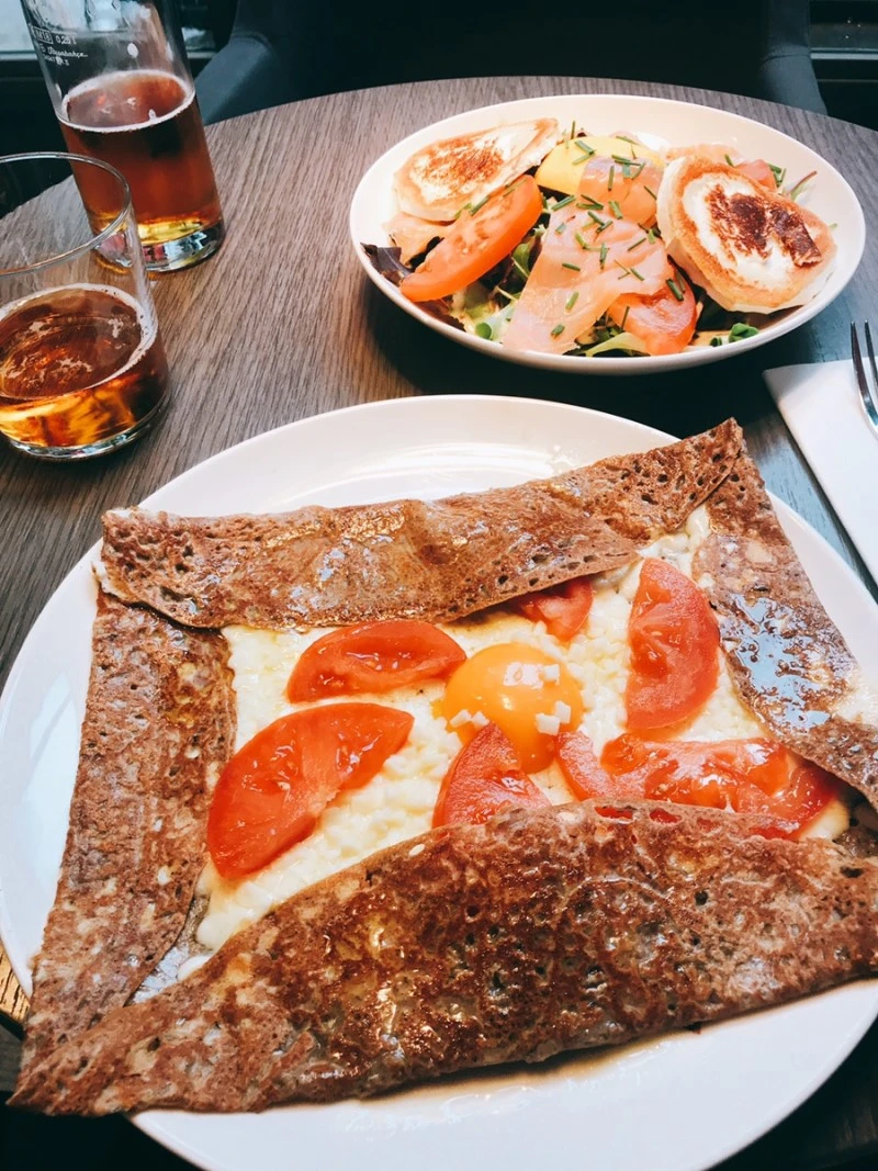풍부한 모차렐라 치즈와 토마토가 있고, 가운데엔 계란 노른자가 있다. 아마 모든 갈레트엔 계란 노른자가 들어가는 것 같다. 맛은 괜찮았다. 크레페는 크림이 듬뿍 들어간 달달한 디저트인 것 같은데, 난 단 음식보다는 짠 음식을 좋아하는 사람이라 크레페는 시키지 않았다.