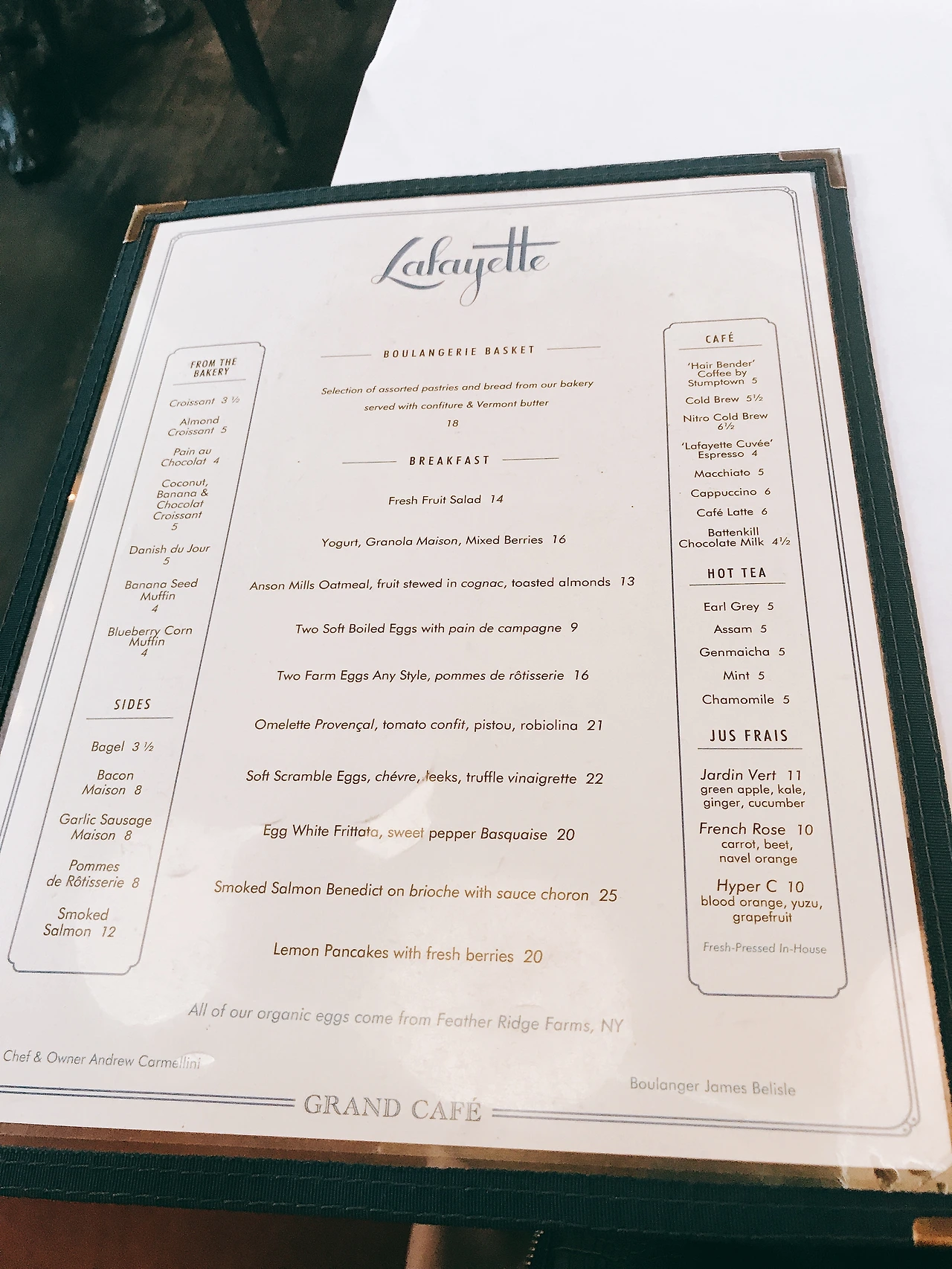나는 여행지의 호텔을 예약할 때, 대부분 조식 불포함을 선택한다. 물론 호텔에서 아침을 해결하는 게 좀 더 편하고 경제적이긴 하겠지만 여행지의 카페에서 아침식사와 커피를 마시는 게 나의 낙이다. 날씨가 맑았던 뉴욕에서의 아침, 노호의 라파예트라는 프랑스풍 카페로 브런치를 먹으러 갔다.