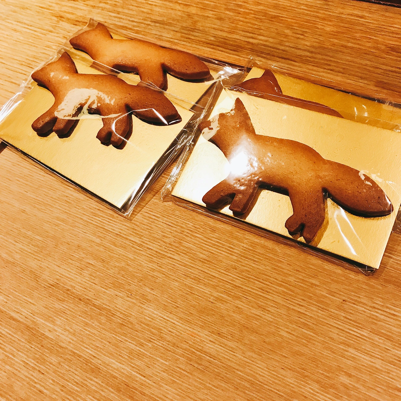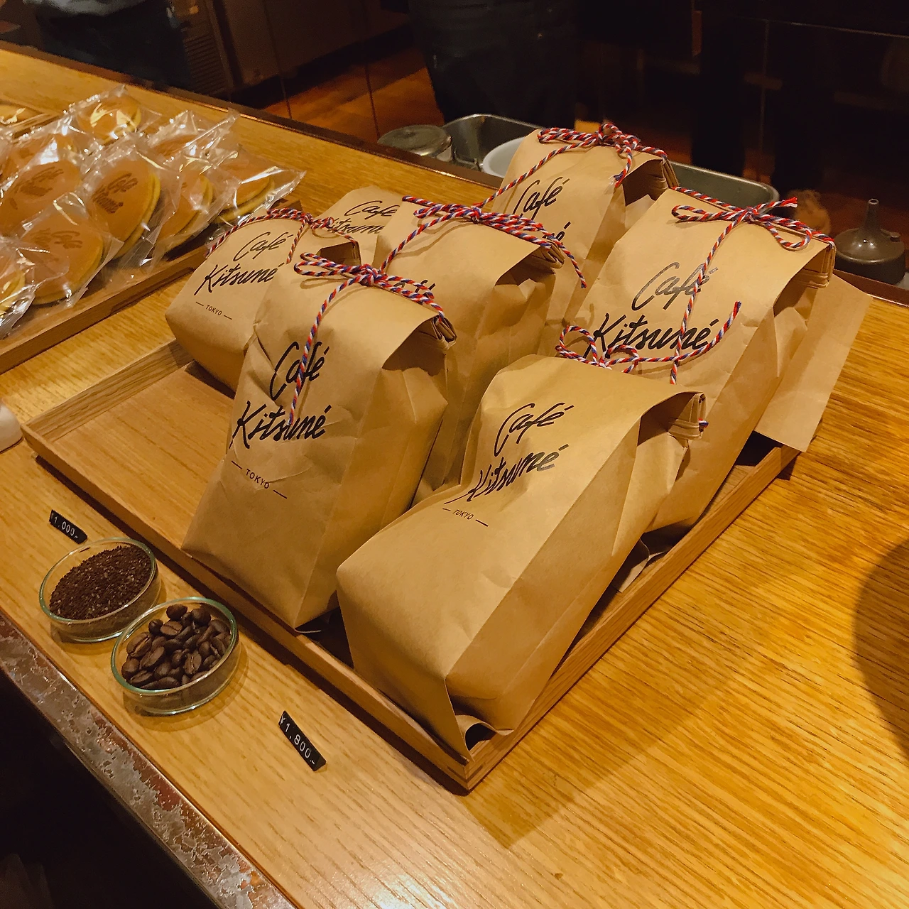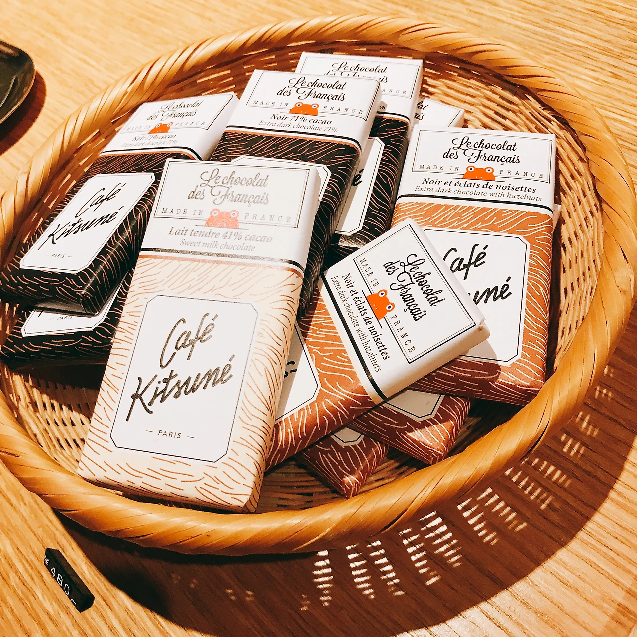 계산대에는 각종 푸드 메뉴가, 벽면 선반에는 메종 키츠네의 굿즈가 진열되어 있었다. ‘카페 키츠네’라는 필기체의 브랜드명이 정말 이쁘다. 포장지까지 매력적인 초콜릿을 몇 개 구입했다.