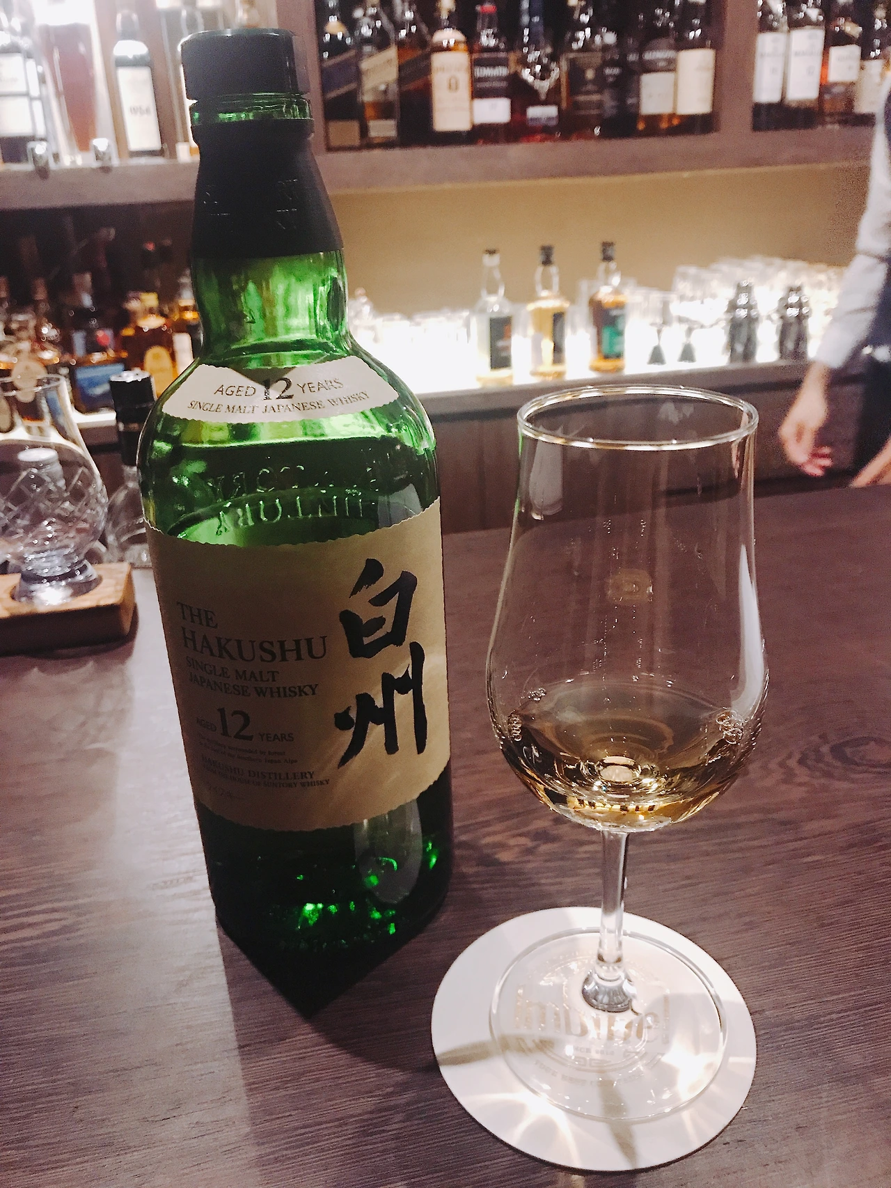 하쿠슈 12년을 날것 그대로 마셔본 건 넉 달 후 논현동 임바이브에서였다. 바 왼쪽 가장 끝자리에 앉았더니 하쿠슈의 초록병이 눈에 들어왔다. 한잔을 다 마시기엔 부담스러웠는데 하프로도 위스키를 마실 수 있었다.