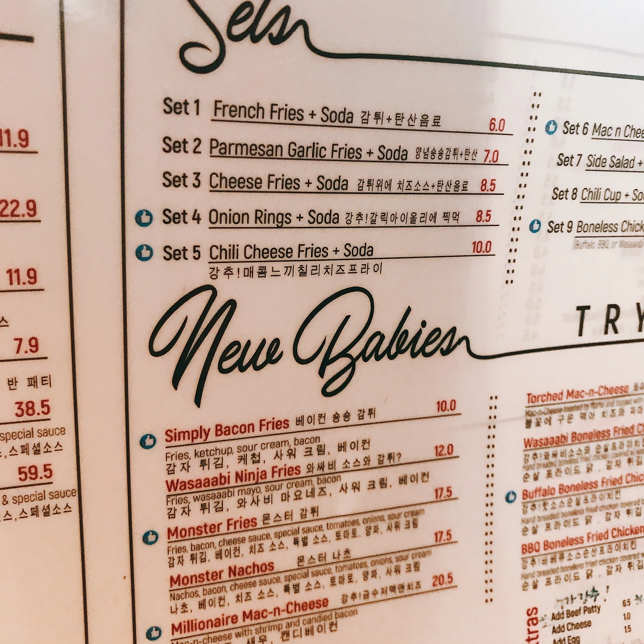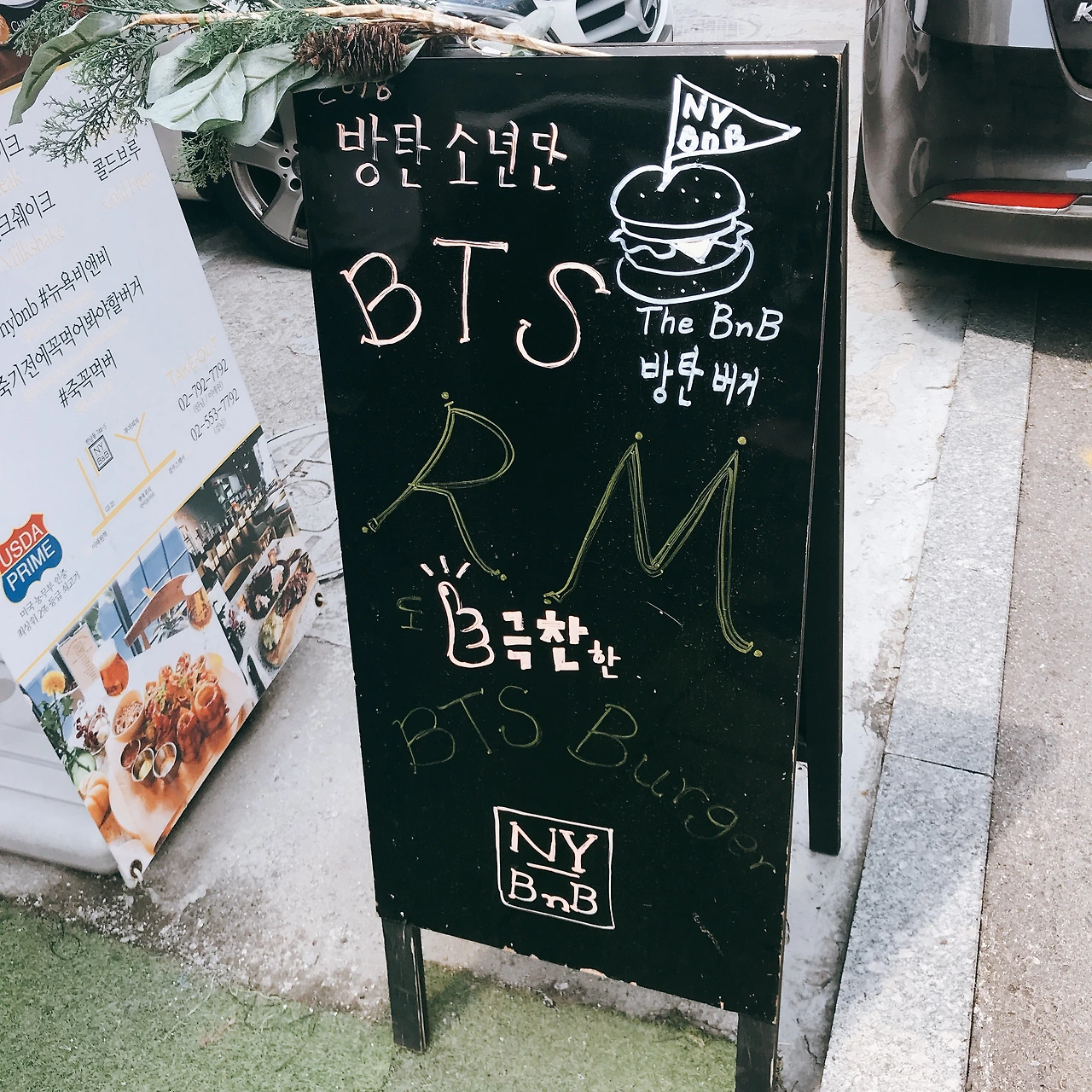 장소를 저장할 당시엔 구글맵에 메모 기능이 없어서, 대체 내가 왜 이곳을 저장했는지 기억이 안 났는데 가게 앞에 세워둔 푯말을 보니 생각이 났다. BTS가 방문해서 햄버거를 먹었다던 바로 그곳이었다.
