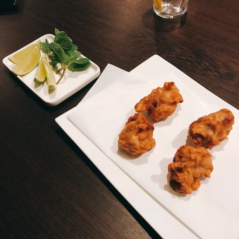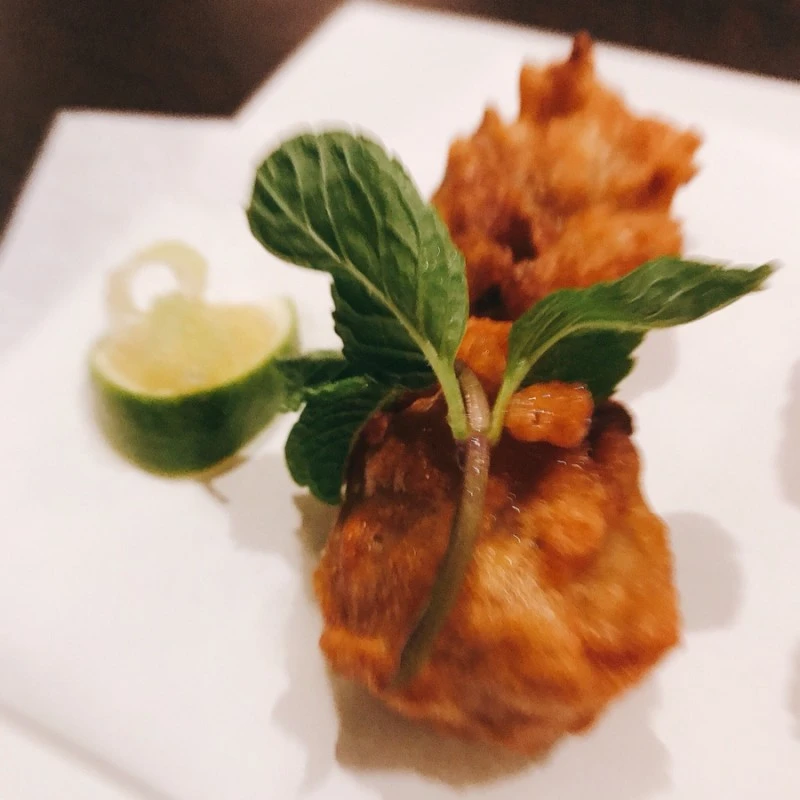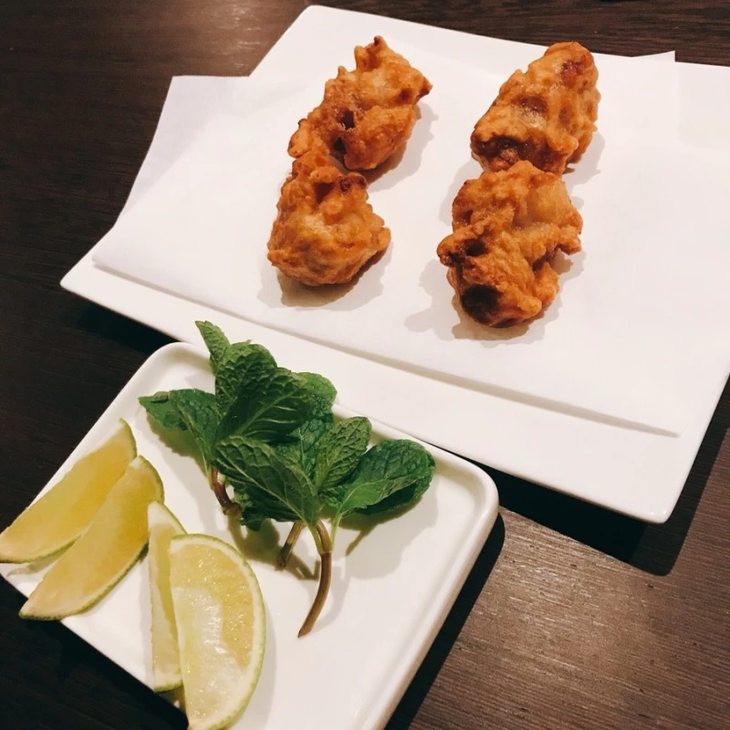정식 안주 메뉴는 아니고 사장님 와이프분의 아이디어인데, 모히토에 들어간 라임과 민트를 닭가슴살 튀김과 함께 먹는 안주이다.