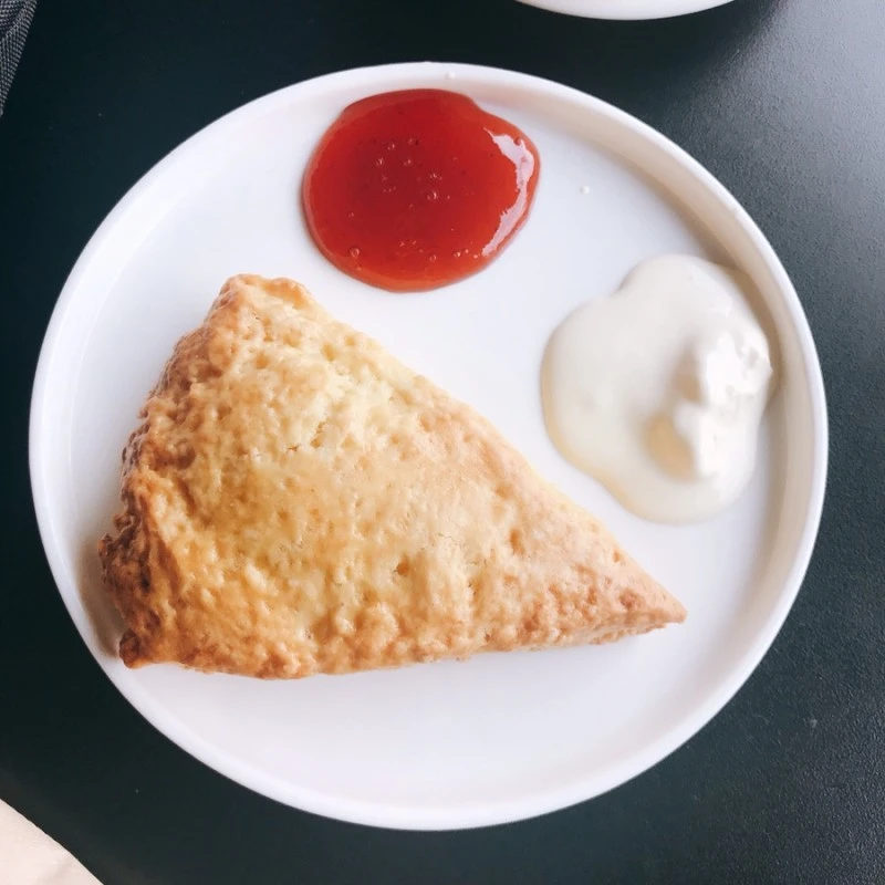 나는 ‘영국식 클로티드 크림’이란 단어를 보자마자 스콘을 주문했는데, 정말로 접시 한켠에 클로티드 크림이 나왔다. 런던 여행을 다녀온지 2년만에 먹는 클로티드 크림이었다. 내가 런던을 다녀온 뒤로 항상 그리워했던 그 크림! 차갑고 부드러운 질감이 마치 바닐라 아이스크림 같았다.