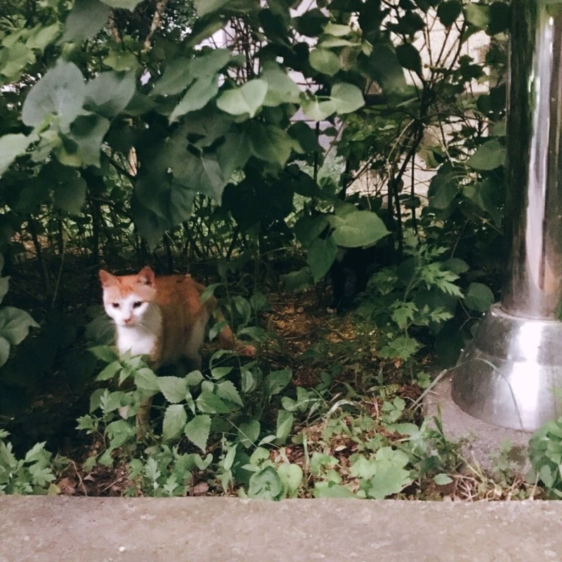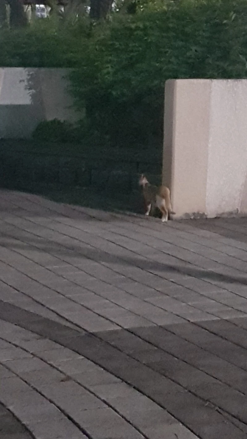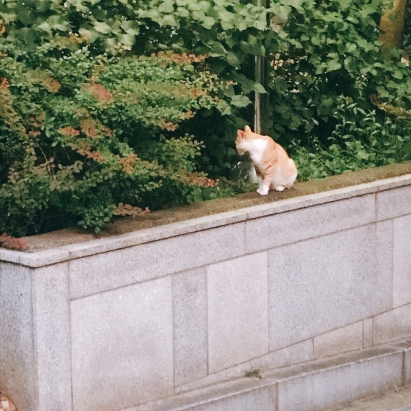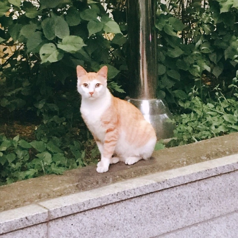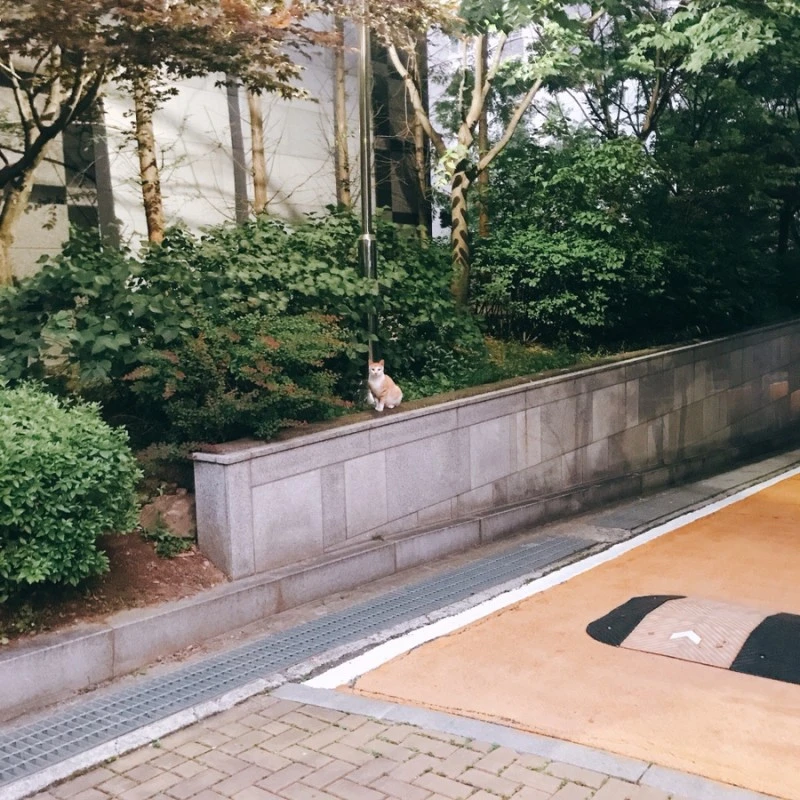 에브리 원스 스토어에서 레몬 마들렌을 사 갖고 집에 가던 중, 사잇길에서 몸집이 작은 노란 고양이를 만났다. 혹시 고양이들이 있나 해서 사잇길에 가본 것이었는데, 화단 위에 앉아 있었다.