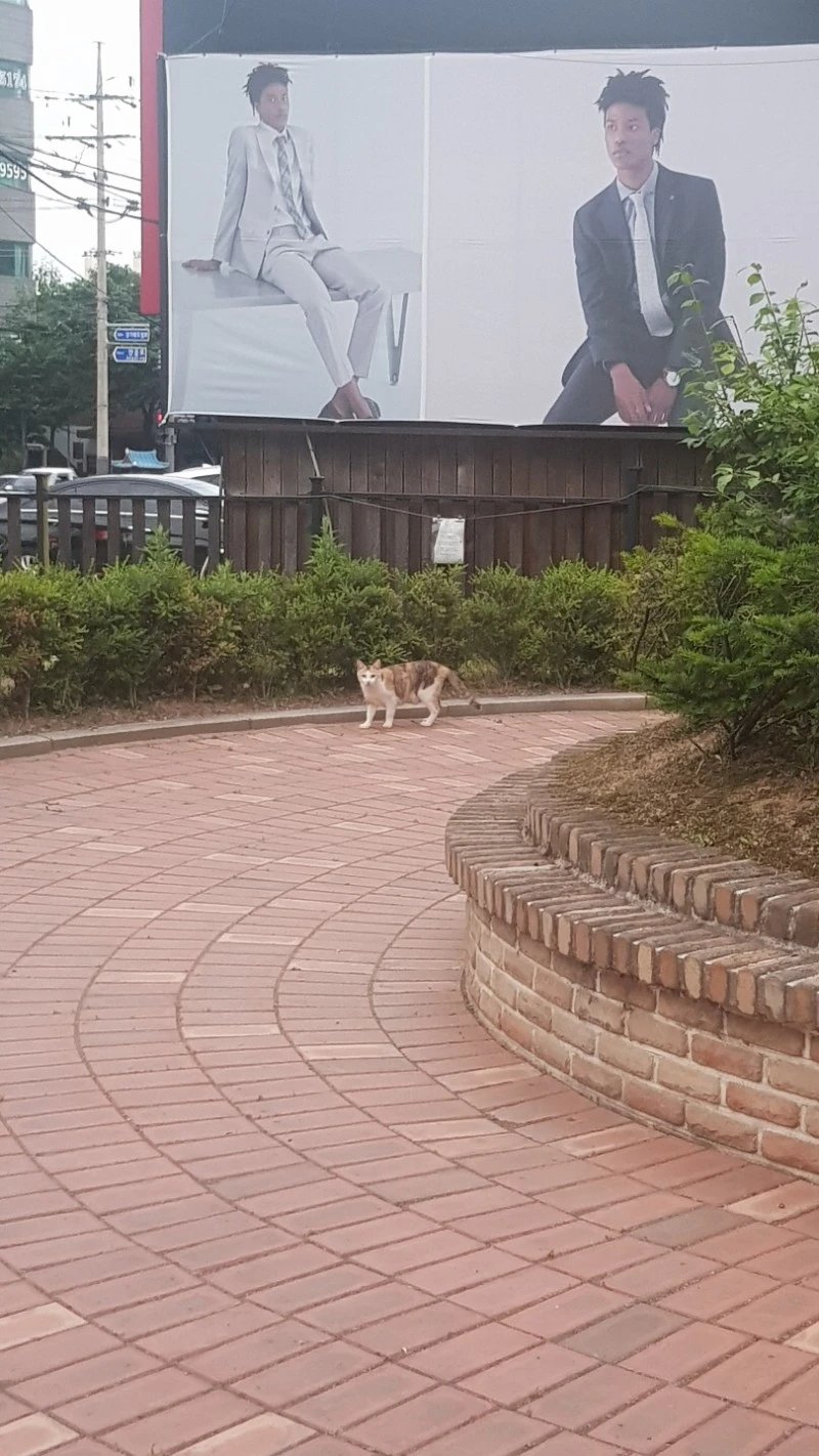 회사에서 퇴근하는 길에 부모님과 단골 카페에서 만나기로 한 날이었다. 나는 이미 도착해있었고 부모님은 집에서 출발해서 카페로 오시는 중이었다. 카페로 오는 길에, 아파트 단지에서 고양이를 보고 엄마가 사진을 보내셨다.
