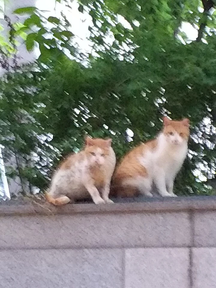 두 마리의 노란 고양이가 (나중에 우리가 부뚜막으로 부르게 된) 화단에 앉아 있었다.