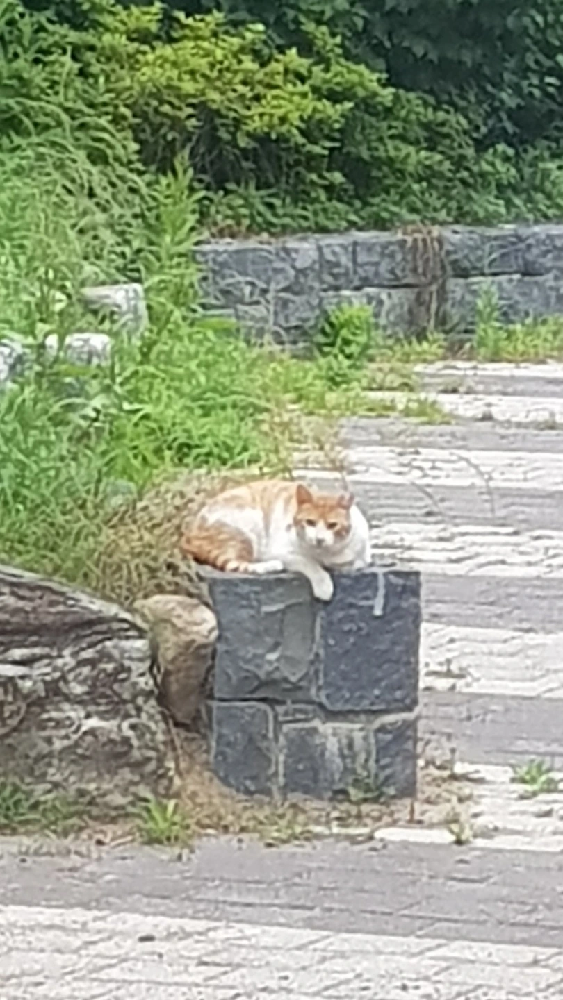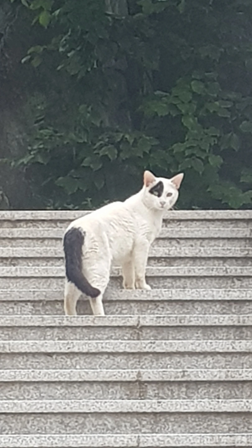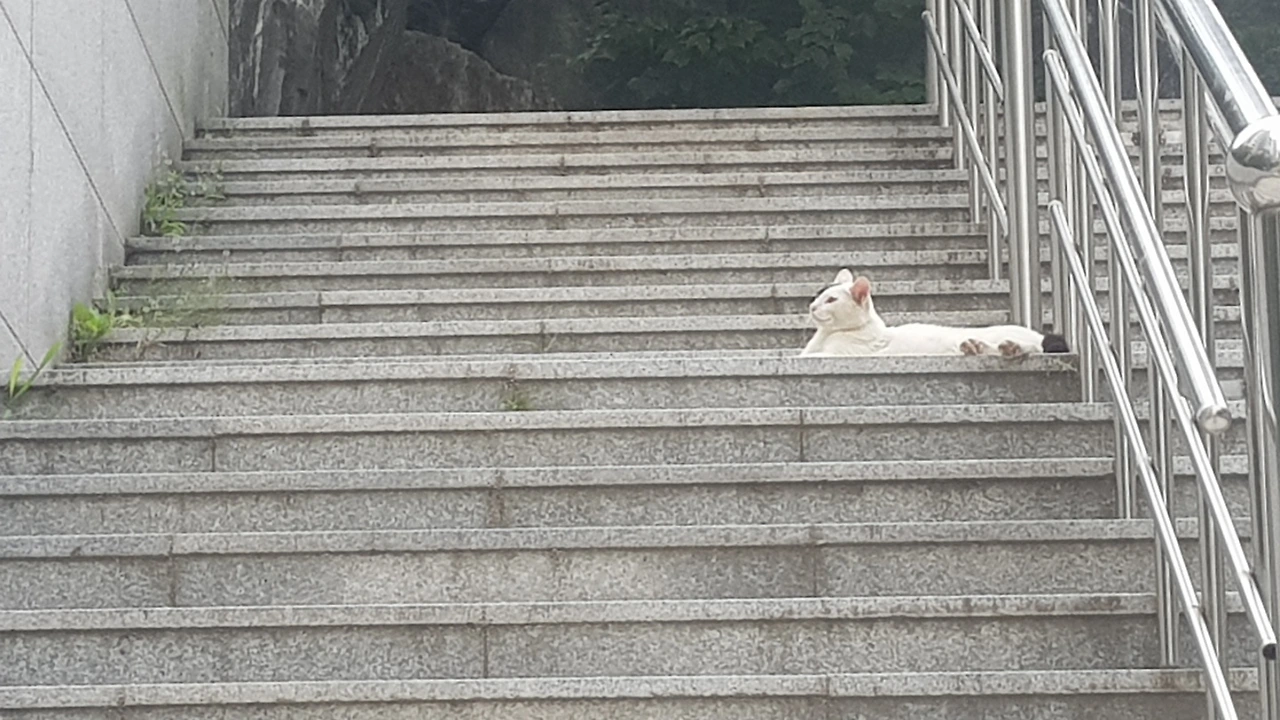 찰리가 앉아있던 맞은 편의 계곡에는 궁예의 형제로 추정되는 여진이가 있었다. 당시에는 고양이를 잘 구분하지 못해서 궁예겠거니 생각했지만, 머리에 변발이 있어서 ‘여진이’라는 이름을 가지게 된 흰색 고양이었다.