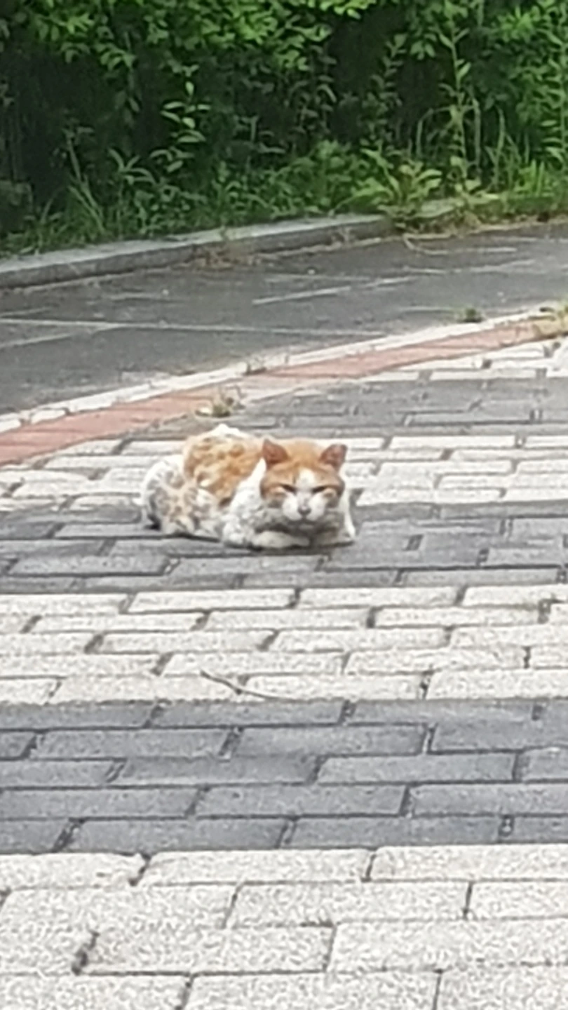 궁예는 아파트 현관으로 향하는 길에 엎드려서 졸고 있었다.