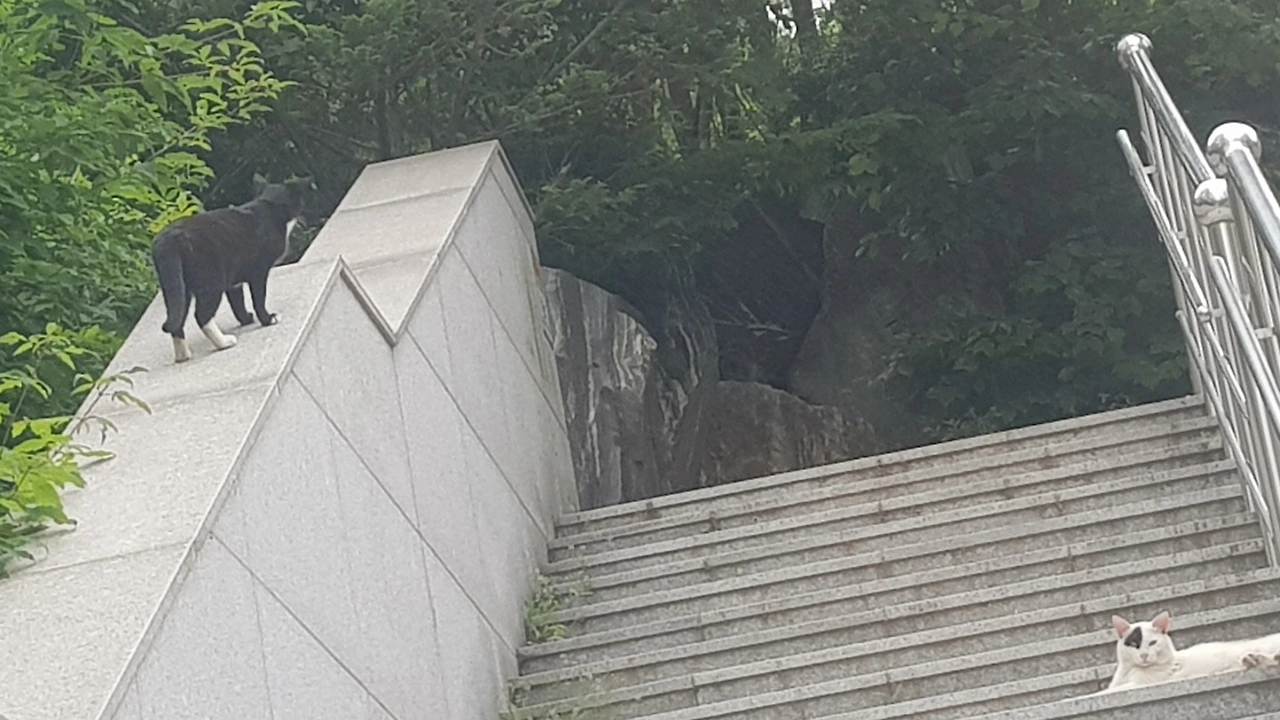 조금 지나자, 두 마리 모두 C동 옆에 있는 계단으로 올라가 있었다.