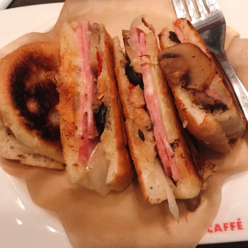 오랜만에 다시 만난 파스쿠찌는 매우 반가웠고 만족스러운 장소였으나, 최근 사무실을 이전한 후로는 방문하기 어려워졌다. 그러나 집에서 도보 15분 거리의 신축 건물에 2층짜리 파스쿠찌가 있길래 점심을 먹으며 커피 한잔 하러 갔다. 매장이 커서 그런지, 기껏해야 파니니 한두 종류가 있던 신분당 강남역점에 비해 너 다섯 종류의 파니니가 있었고, 이탈리안 포카챠라는 메뉴도 있었다. 일반적인 포카챠와 달리 큼지막한 직사각형 피자처럼 생겼다.