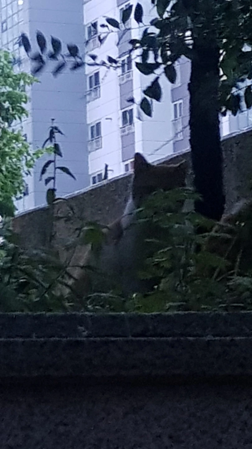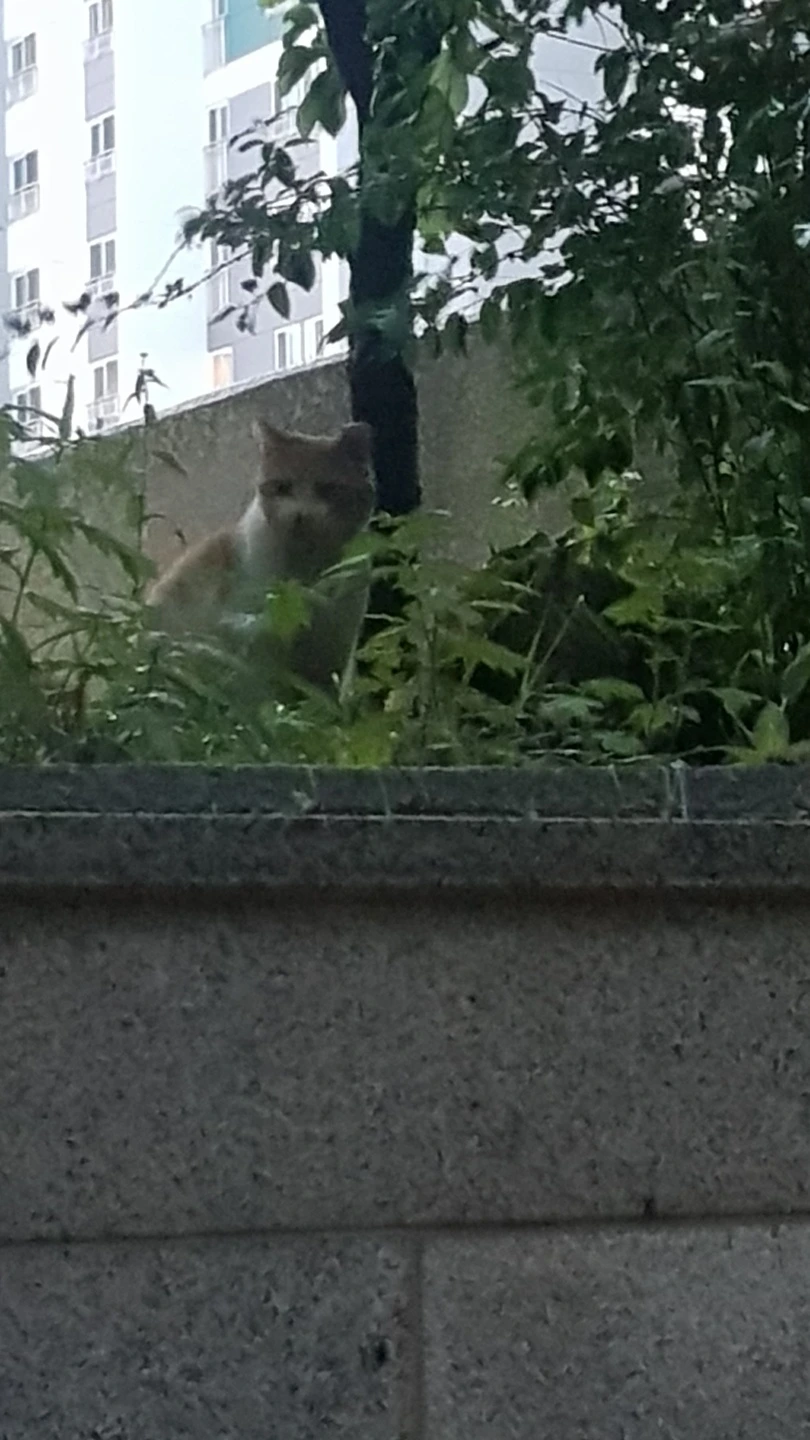 스트레스와 전날 저녁에 먹은 매운 음식 때문에 하루 종일 속이 더부룩한 하루를 보냈다. 다음날 강의가 있어서, 간식으로 먹을 마들렌을 사러 집 근처의 디저트 가게에 들르는 동안, 아버지가 화단 위의 고양이를 발견하셨다.