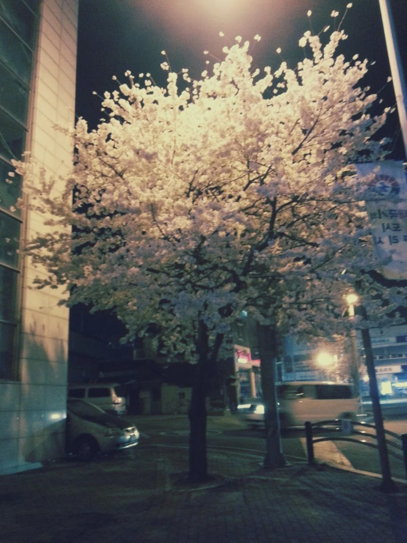 집에 가는 길, 매혹적인 벚꽃 나무를 발견했다.