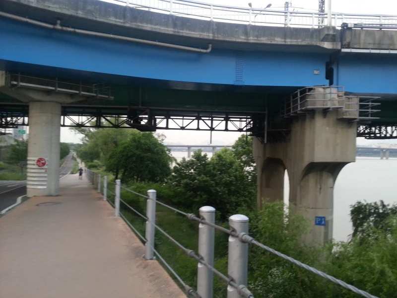 강변역 끝자락에 잠실철교를 건널 수 있는 길이 나오는데, 이 길을 따라 걷다 보면 갈림길이 나온다. 직진하면 잠실철교를 건너 잠실나루로 가게 되고, 오른쪽으로 방향을 틀면 한강시민공원에 진입하게 된다.