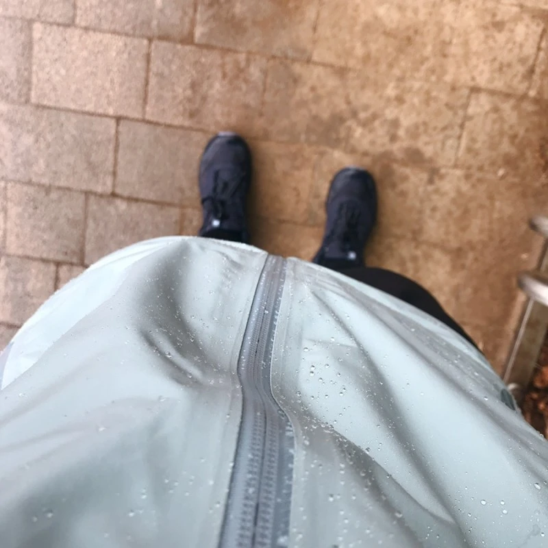 방수 재킷의 발수 기능 때문에, 빗방울이 재킷에 떨어지면 젖지 않고 또르르 굴러 떨어지는 게 신기했다. 그리고 후드에 떨어지는 빗소리는 마치 유리창에 떨어지는 빗방울 소리 같았다. 빗소리를 들으며 산에 혼자만 있으니, 정말 오롯이 나 혼자만 세상에 있는 것 같았다.