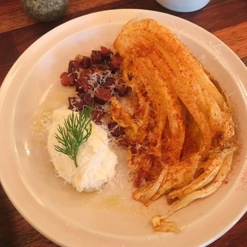 마우로아는 성수동에서 중곡동으로 이사 오면서 스몰 플레이트에 강한 와인바가 되었다. 이번에는 항상 먹던 트러플 감자튀김 대신, 구운 알배추를 주문해봤고 바로 이것이 신의 한 수가 되었다.