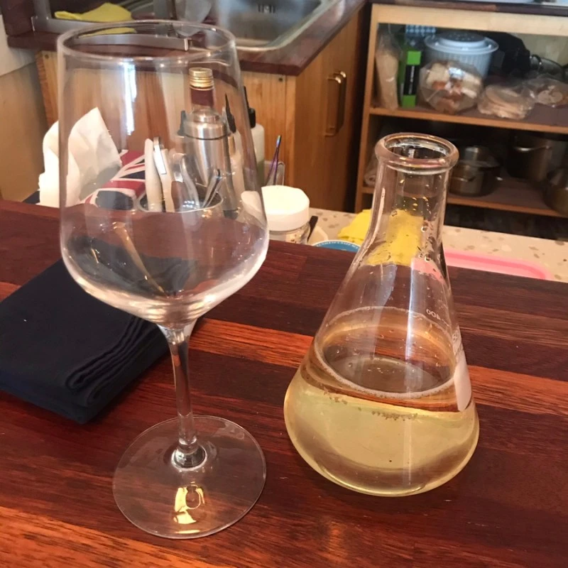 이곳의 하우스 와인은 하프 보틀로 주문이 가능한데, 하프 보틀을 시켰더니 과학시간에 볼 수 있었던 ‘진짜 플라스크’가 나와서 신기했다.