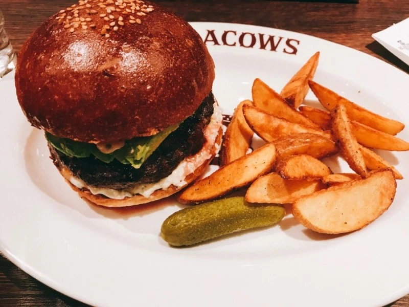 추천메뉴인 아보카도 햄버거를 선택했다. 블랙 카우의 햄버거는 독특하게도, 양상추 등의 채소가 없다. 햄버거가 커져서 먹기 불편한 점을 보완하기 위해, 채소를 소스로 만들어 햄버거에 넣어버렸다고 한다. 그러나 채소가 아쉬운 사람들은 따로 토핑을 추가할 수 있다.