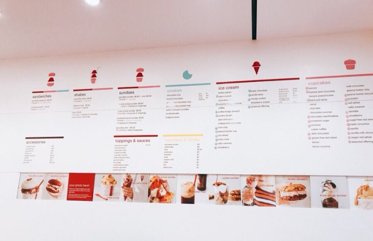 생각보다 스프링클에 라인업된 디저트 종류가 많았다. 아이스크림은 콘이 아니라 컵으로 먹을 수도 있었고 (그럼 와플콘이 아니라 더 싸진다), 빵 사이에 끼워 샌드위치로 먹을 수도 있다. 모양은 베스킨라빈스에서 파는 샌드위치 아이스크림, 바로 그것이다.
