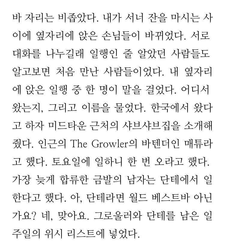 매튜는 일주일간 겪어본 다른 뉴욕 사람들과는 다르게 매우 친절하고 싹싹해서 그로울러에 가봐야겠다고 생각했다.